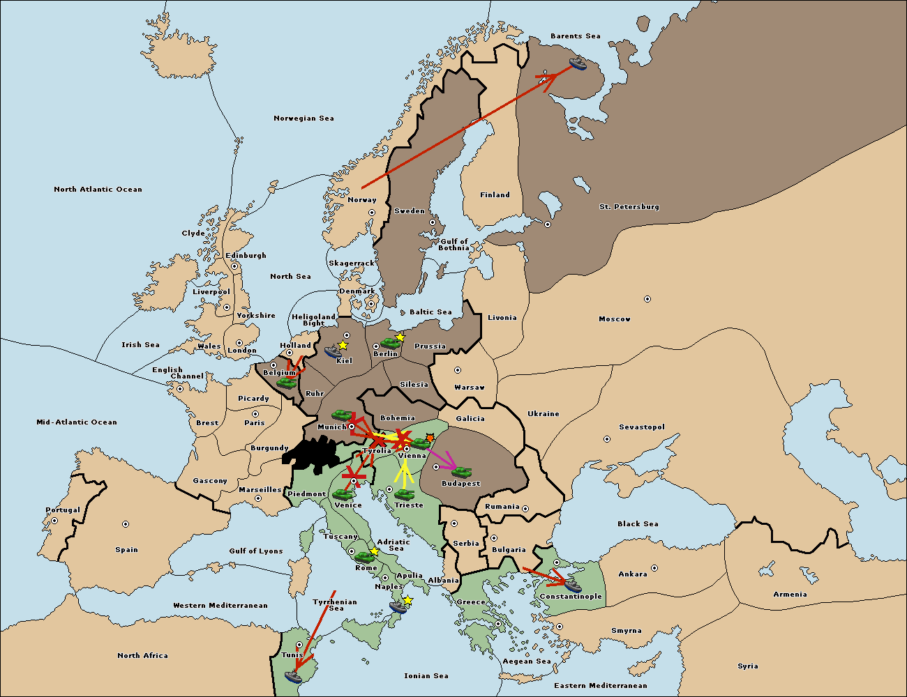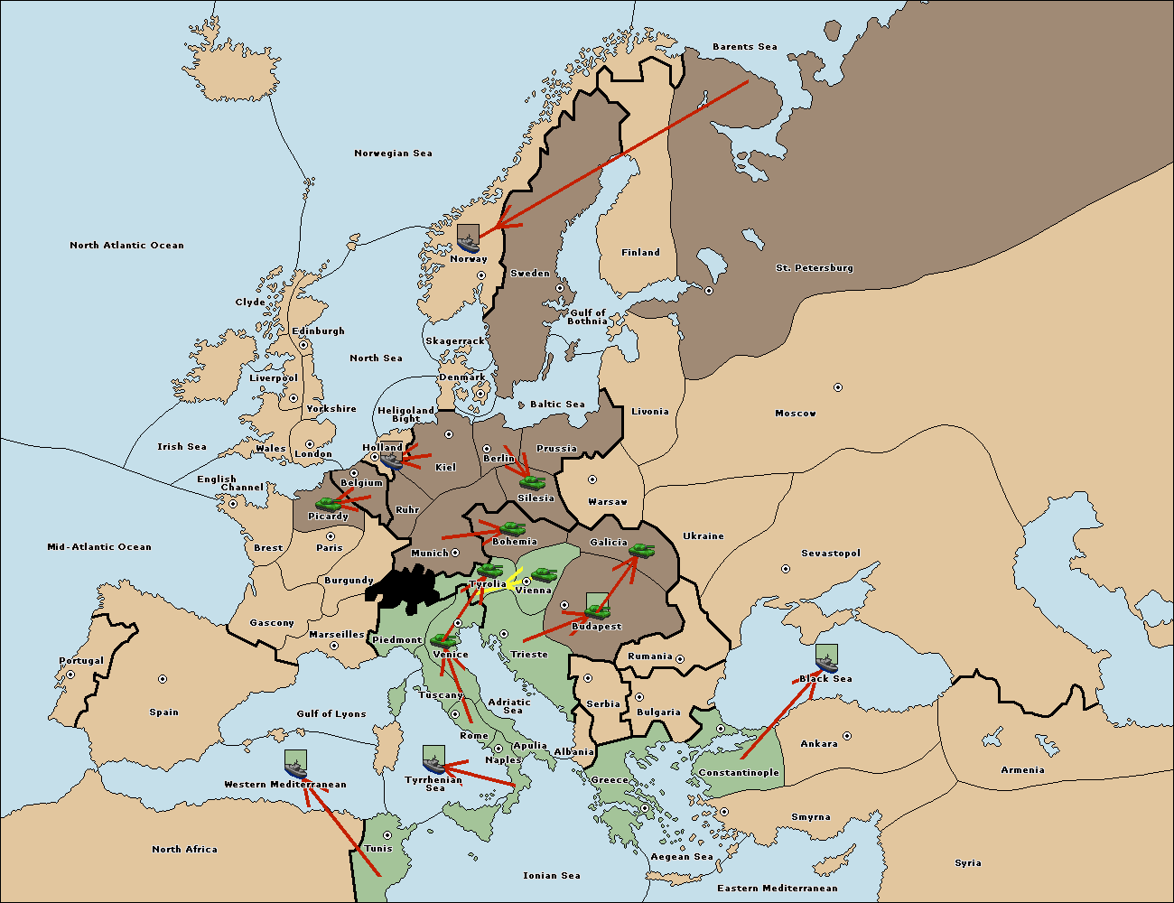 The army at Tyrolia move to Vienna.