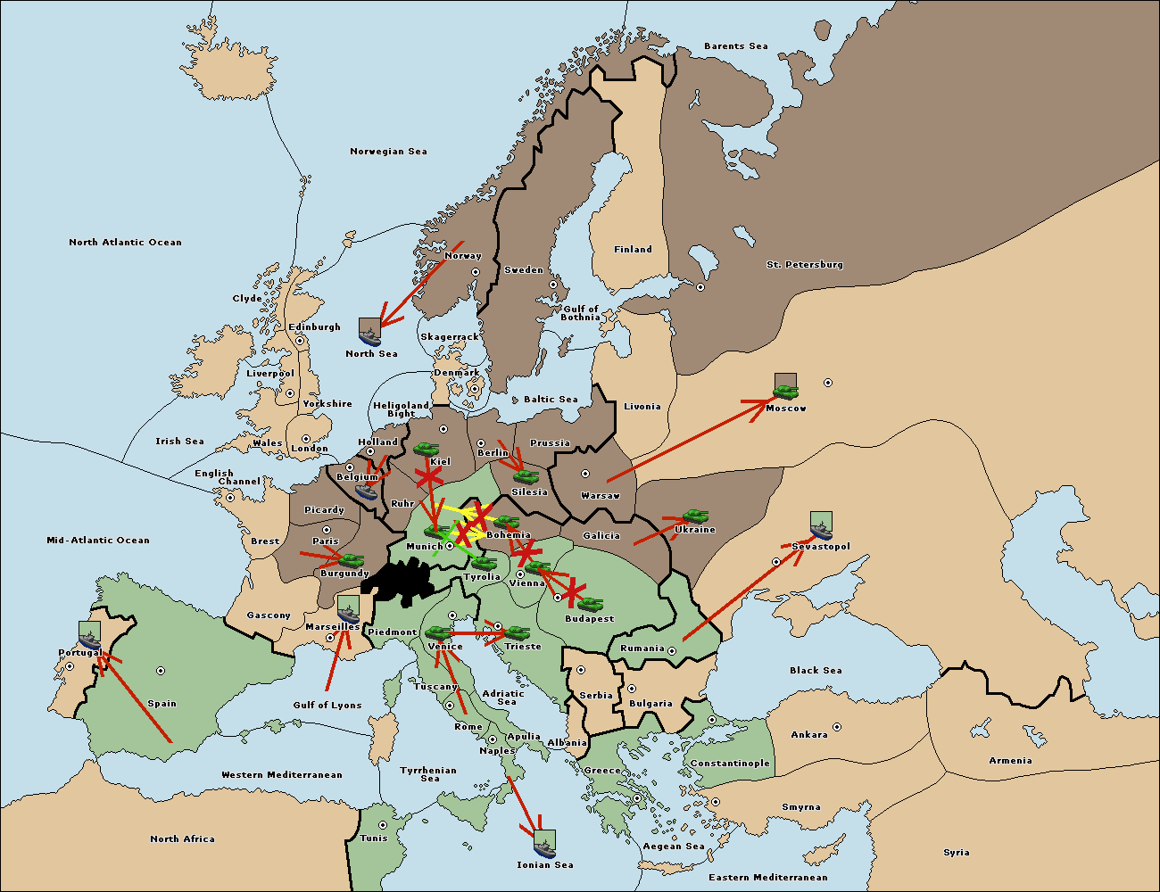 The army at Tyrolia move to Munich.