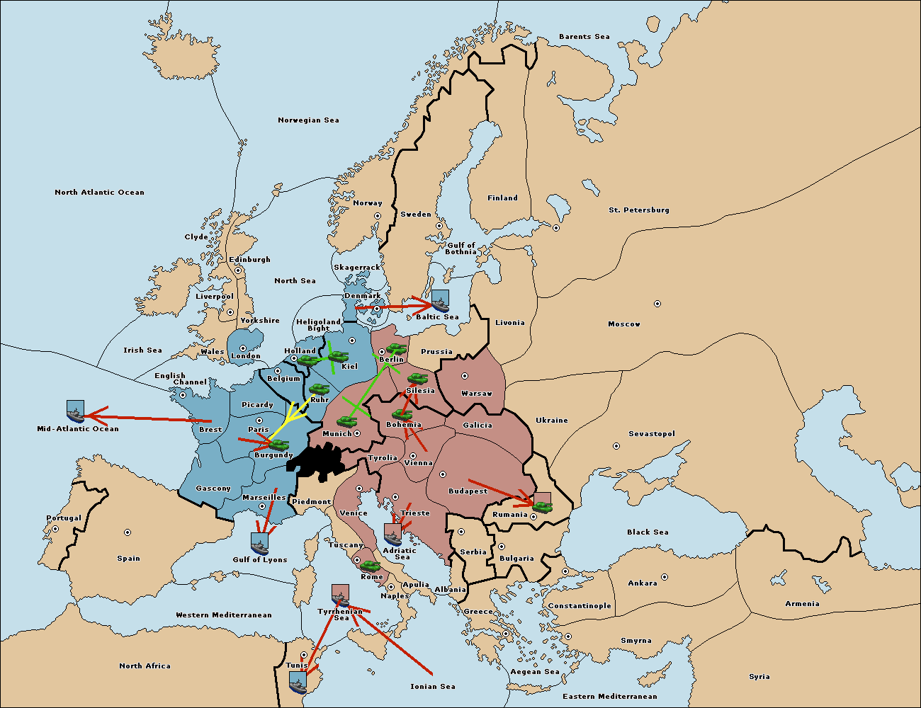 The fleet at Mid-Atlantic Ocean move to Western Mediterranean.