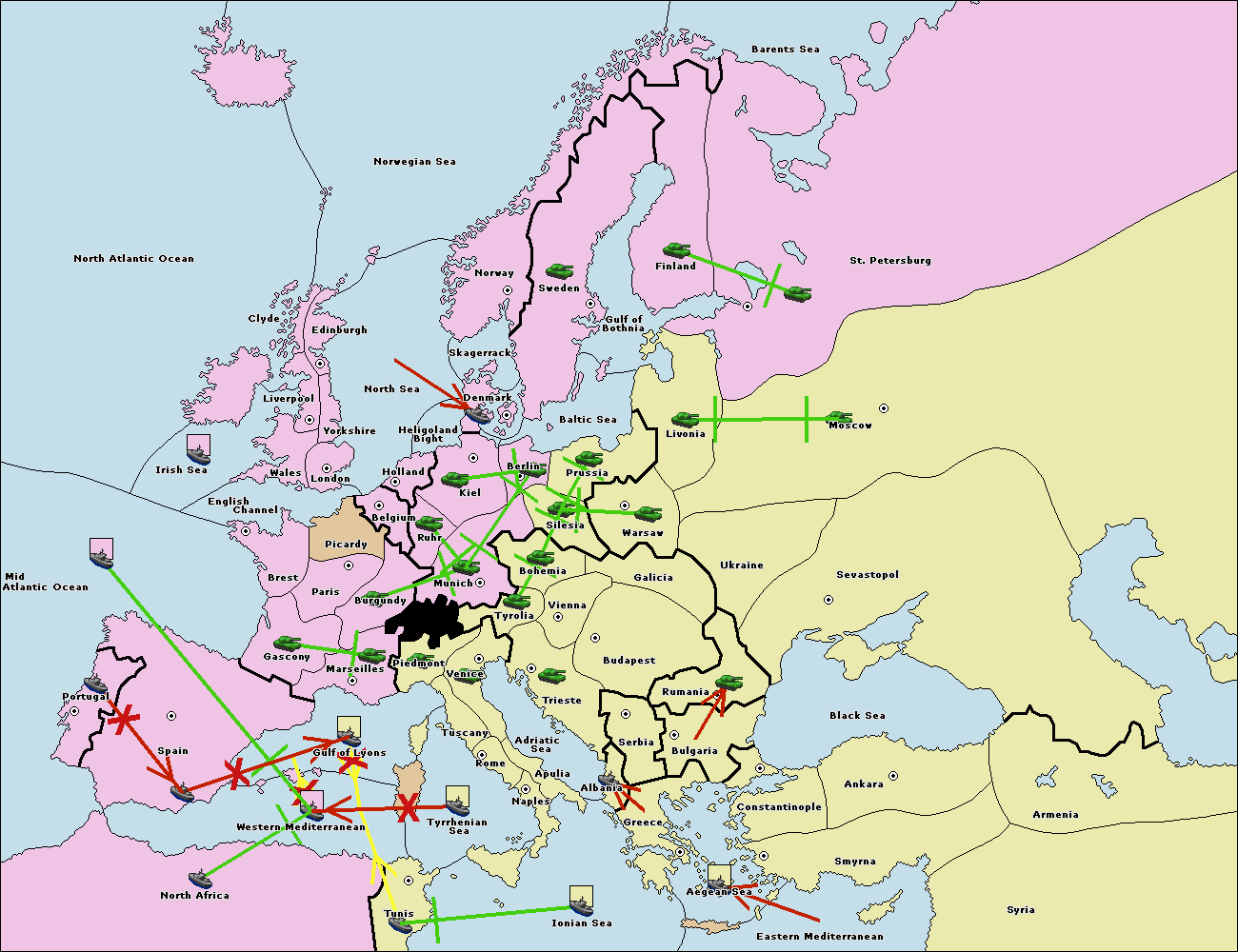 The fleet at Bulgaria (South Coast) move to Greece.