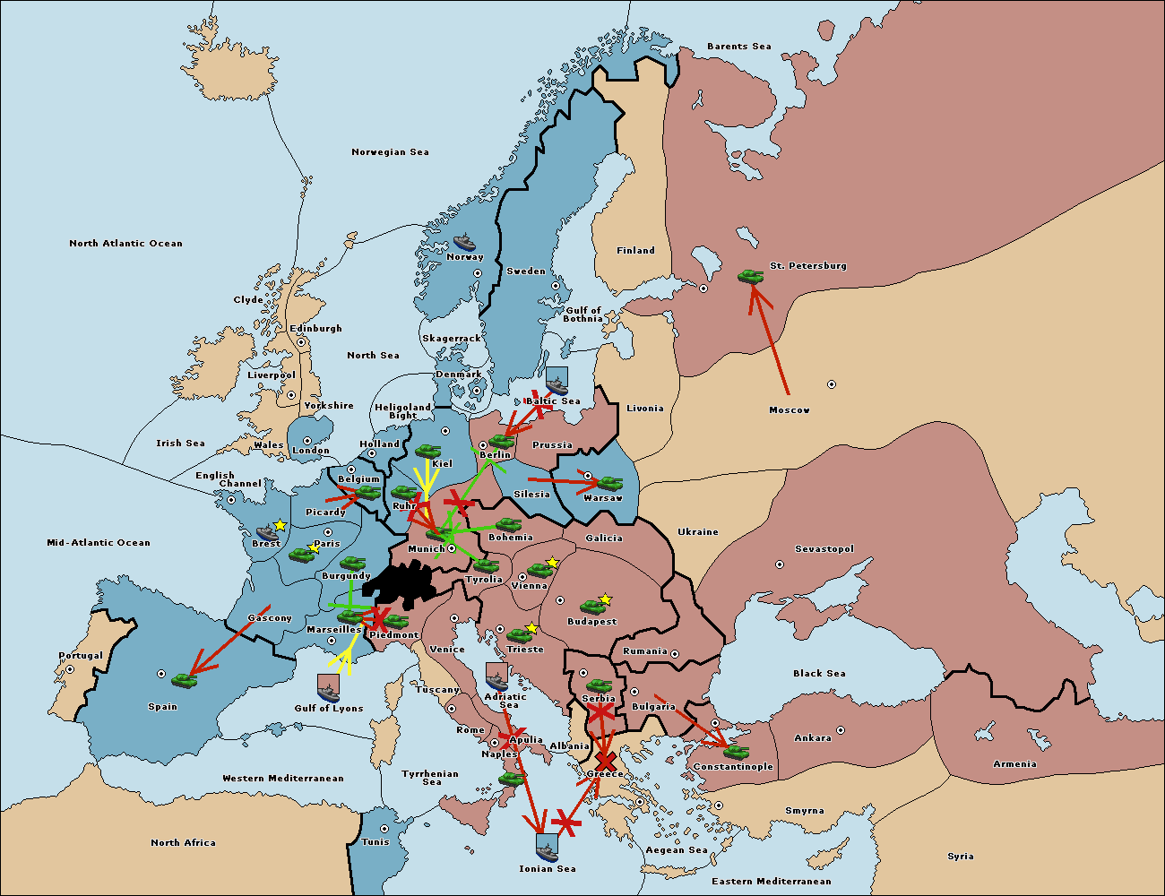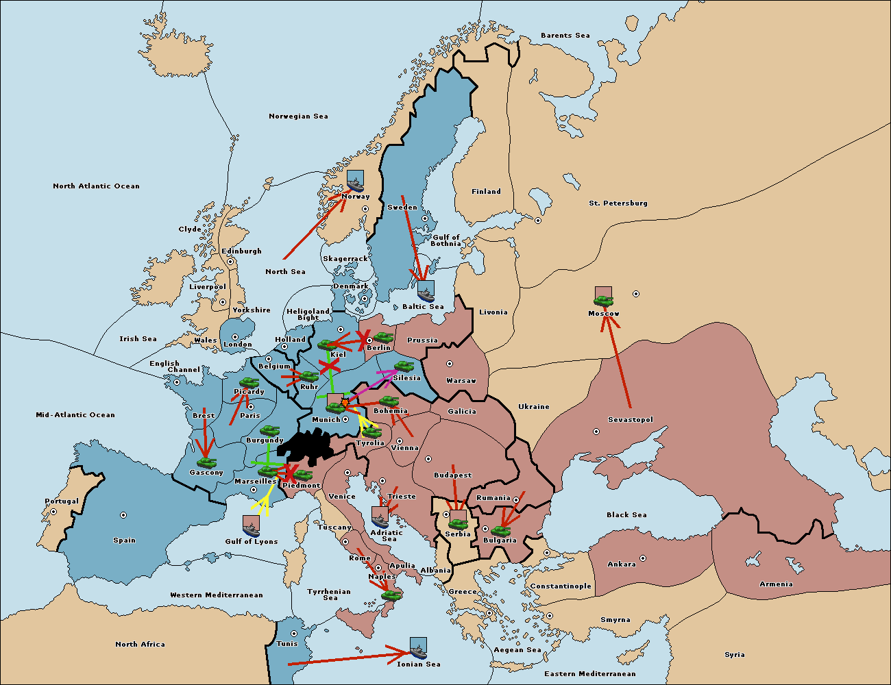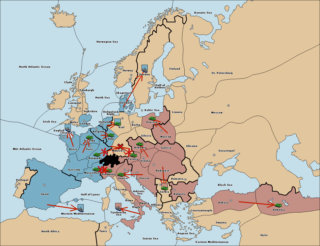 The fleet at Gulf of Lyons support move to Marseilles from Piedmont.