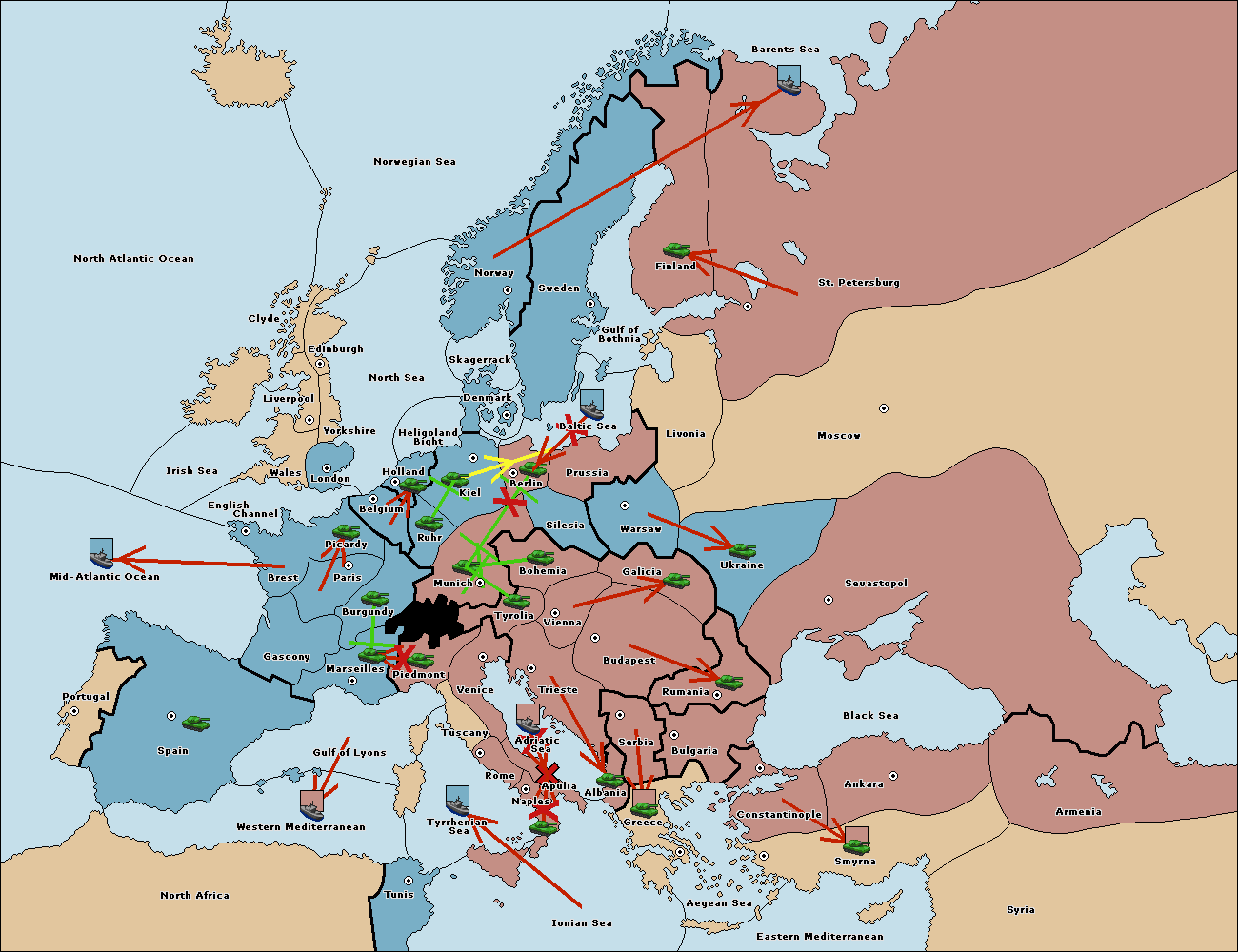 The fleet at Mid-Atlantic Ocean move to Western Mediterranean.
