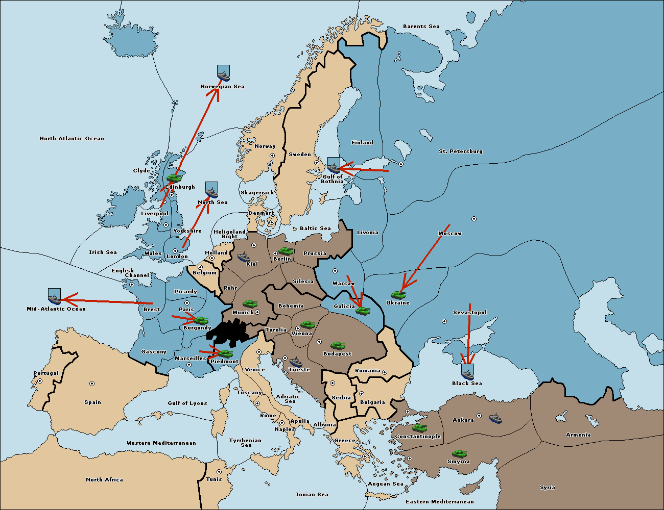 The fleet at St. Petersburg (South Coast) move to Gulf of Bothnia.