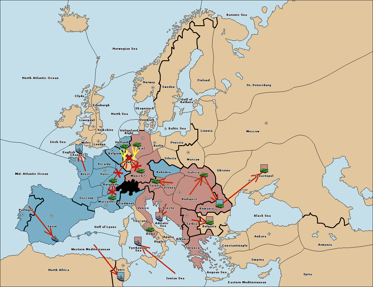 The fleet at Mid-Atlantic Ocean move to Western Mediterranean.