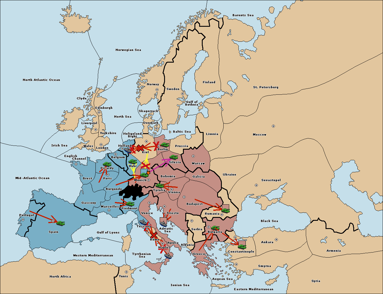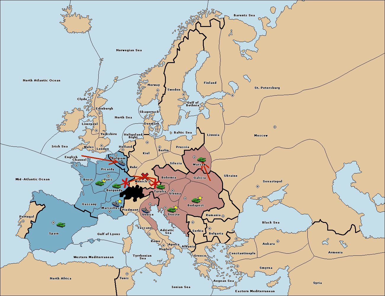 The army at Tyrolia support move to Munich from Silesia.