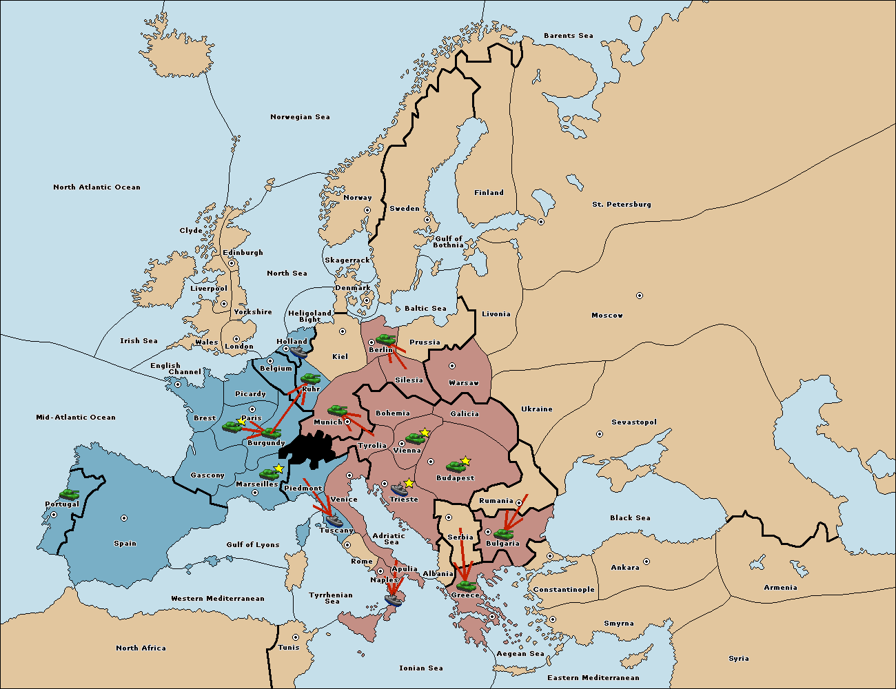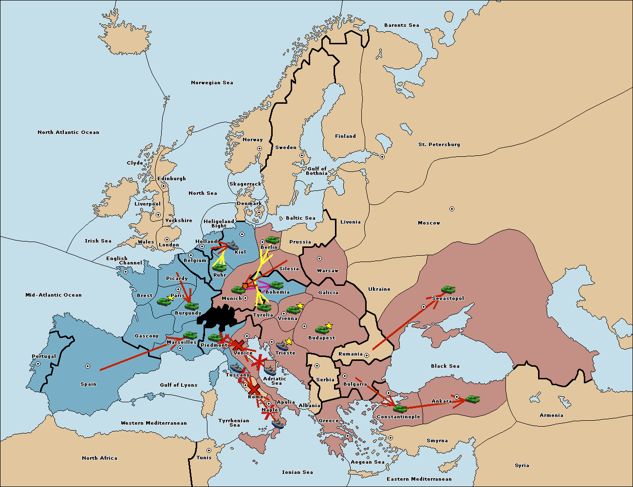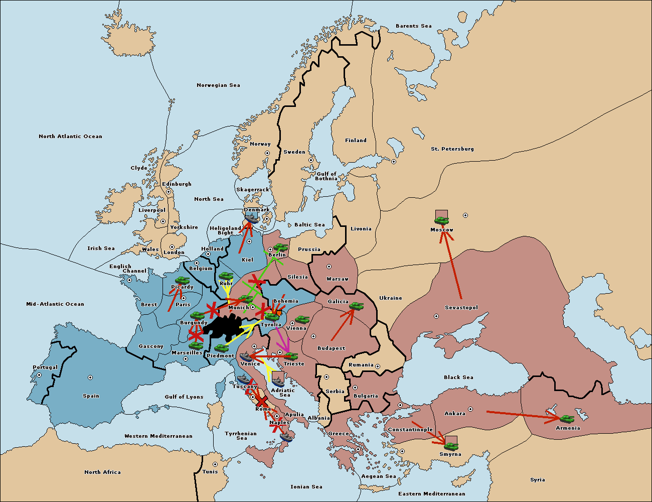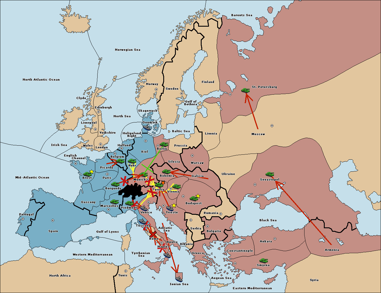 The army at Munich support move to Tyrolia from Trieste.