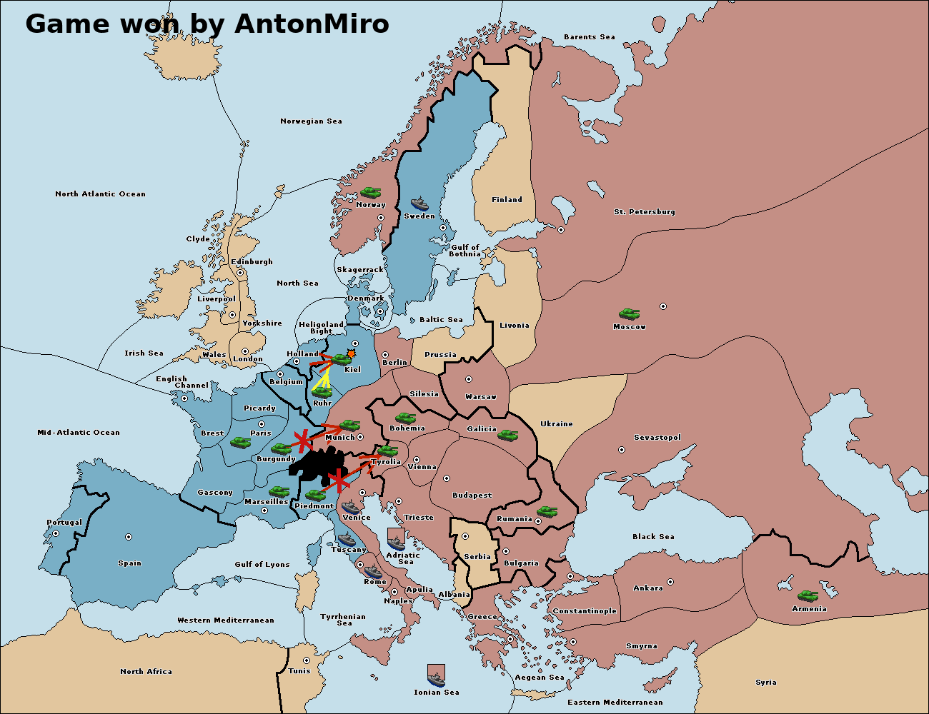The army at Tyrolia move to Munich.