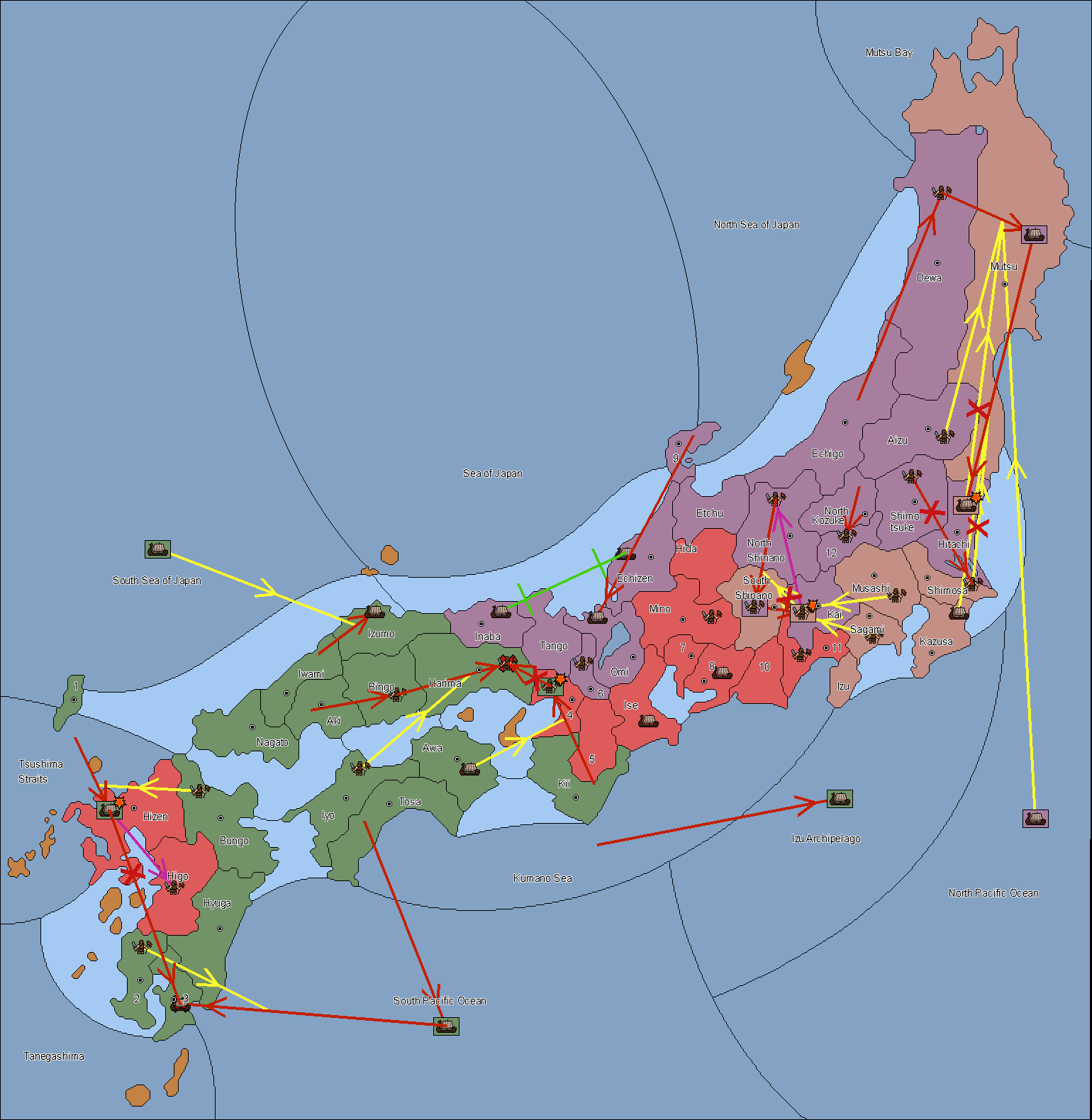 The army at South Kozuke (12) support move to North Shinano from North Kozuke.