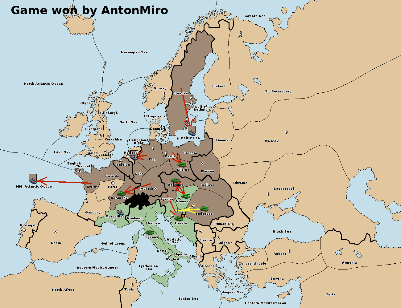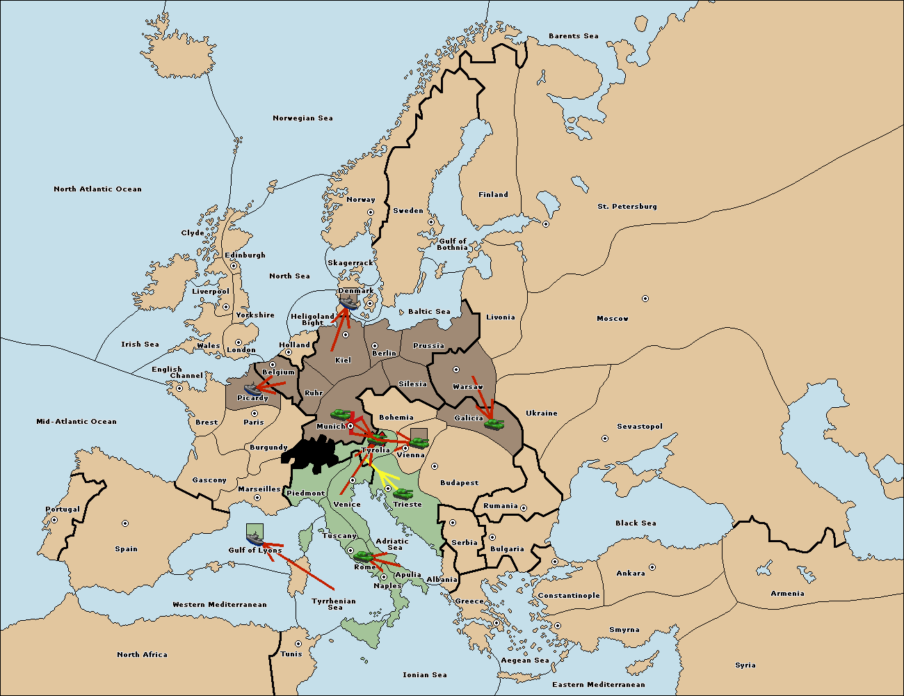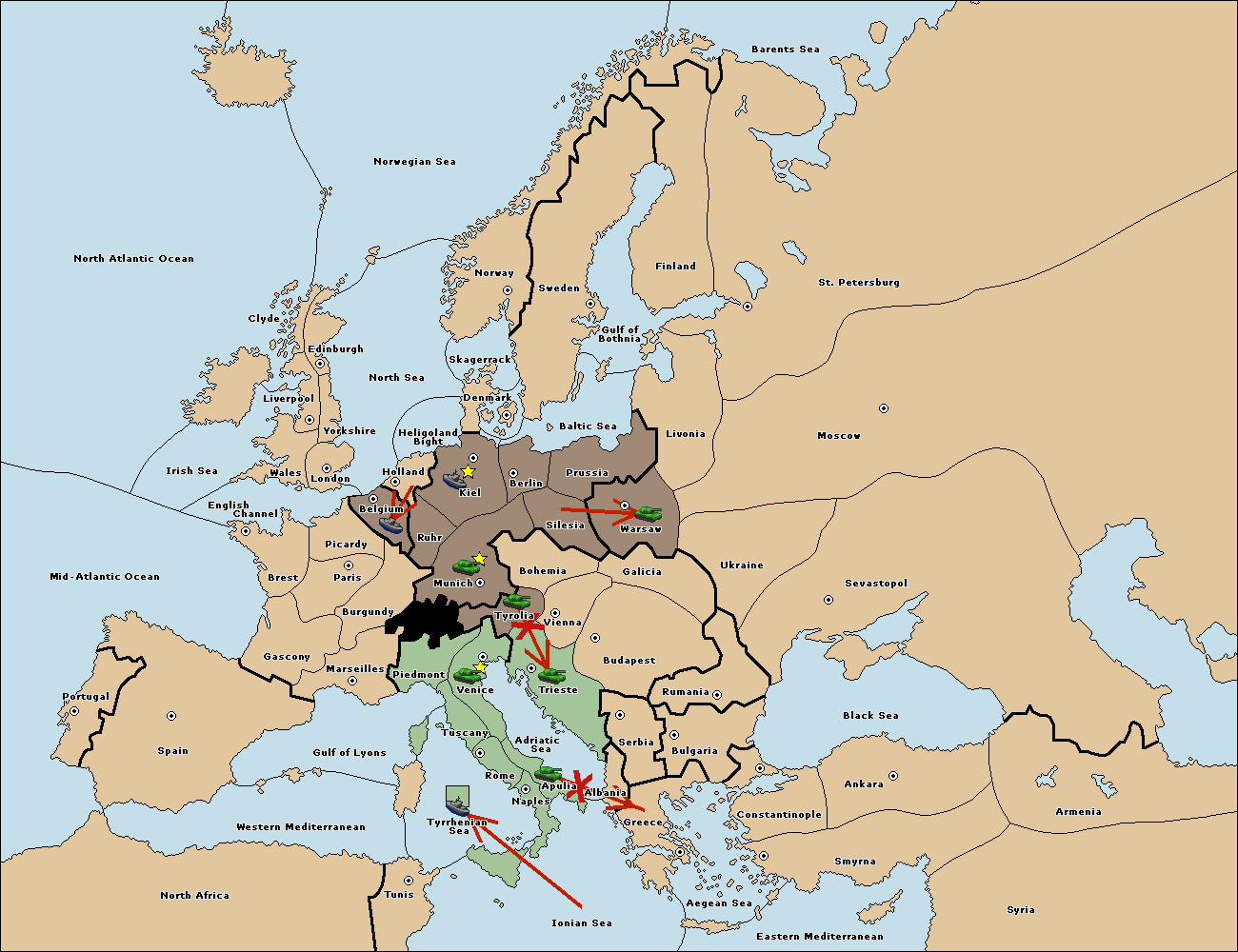 The army at Tyrolia move to Trieste.
