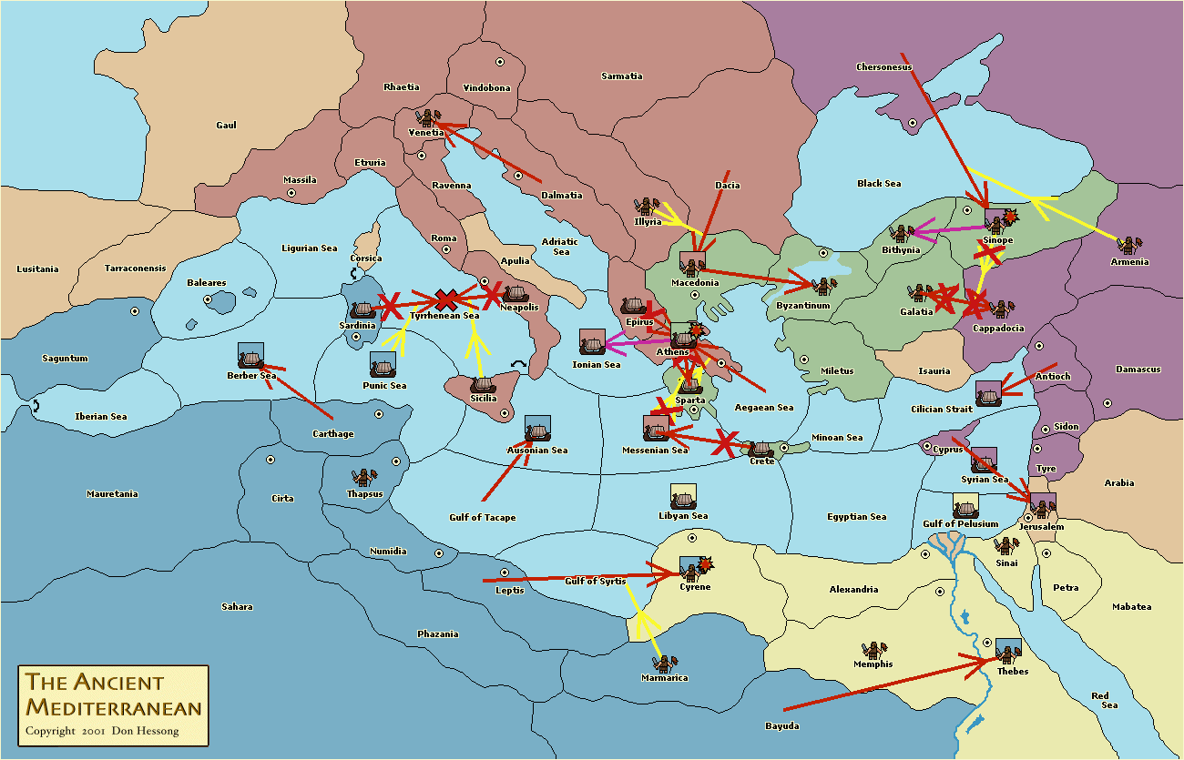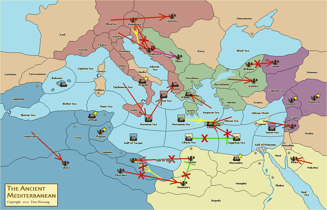 The fleet at Messenian Sea support move to Crete from Minoan Sea.