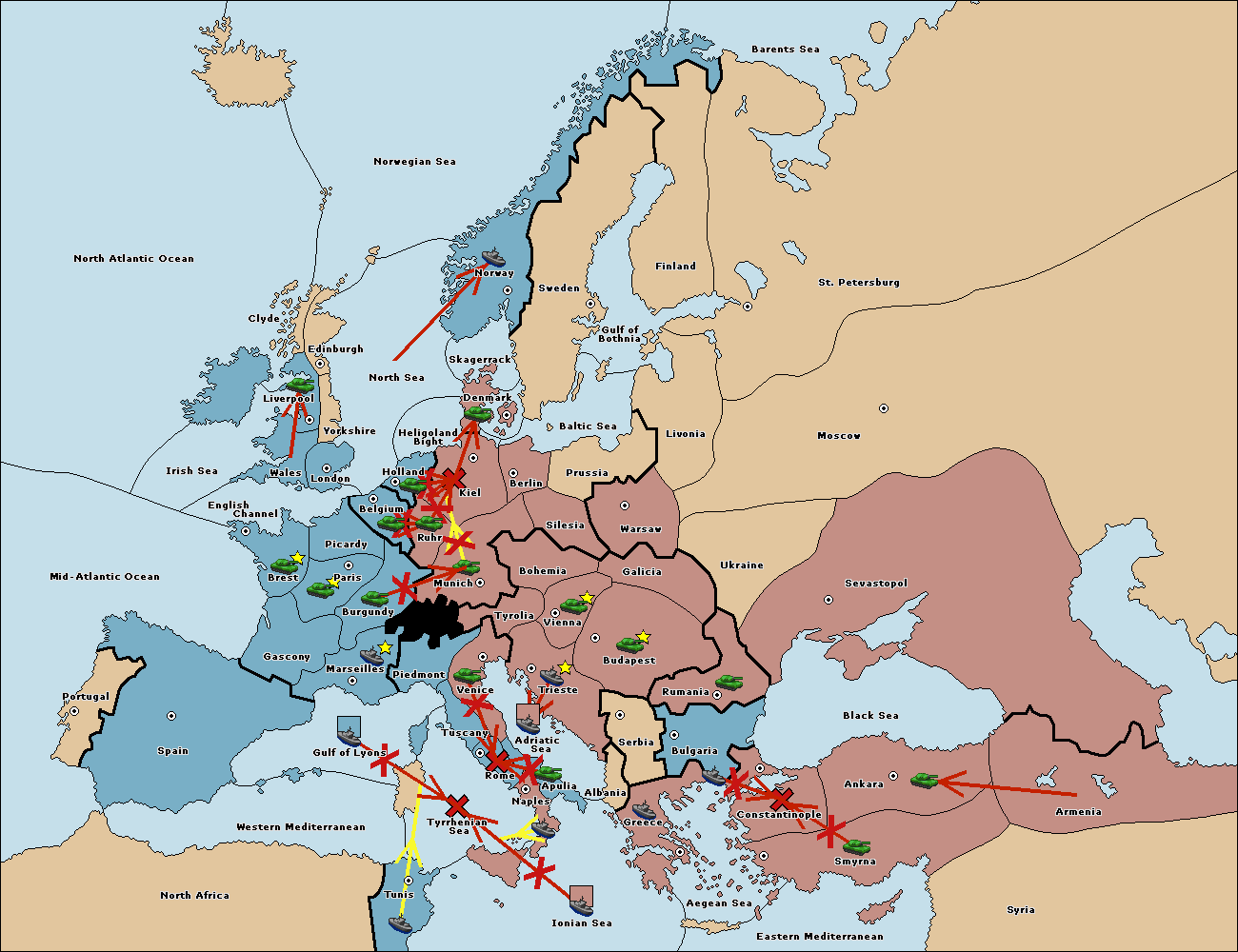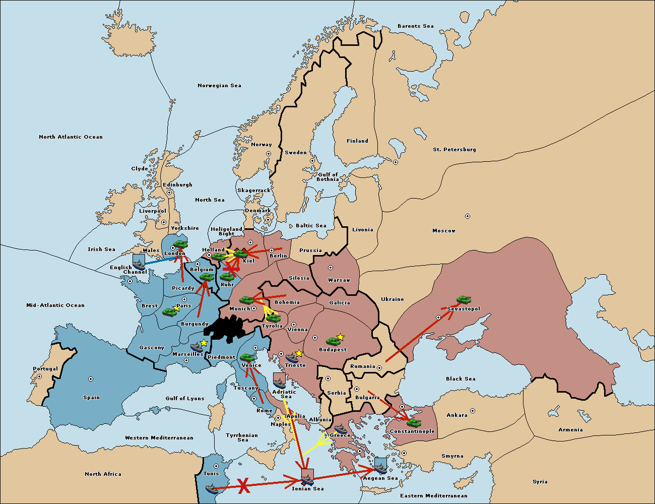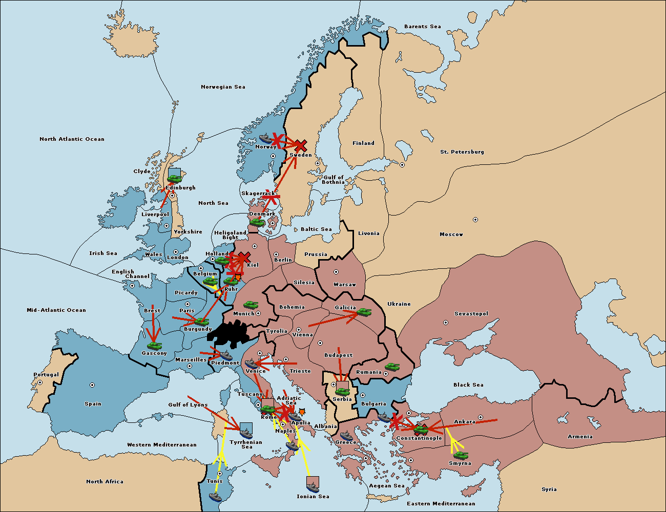 The fleet at Bulgaria (South Coast) move to Constantinople.