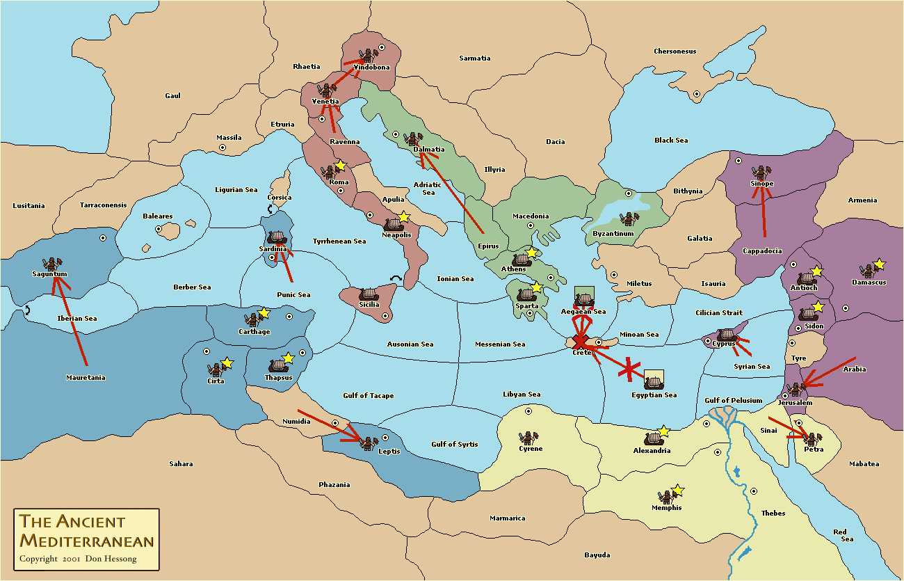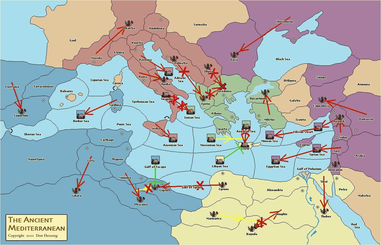 The fleet at Messenian Sea support move to Crete from Aegean Sea.