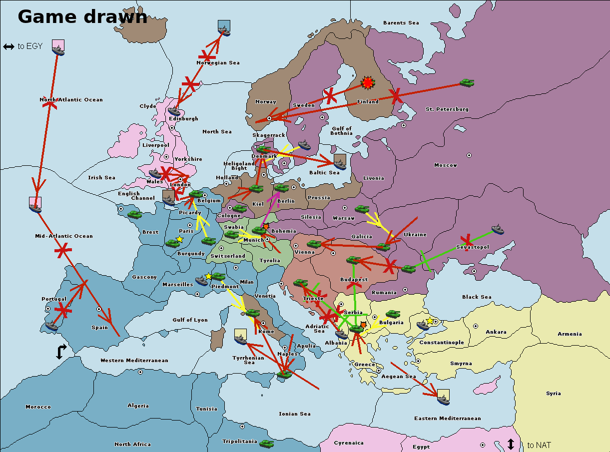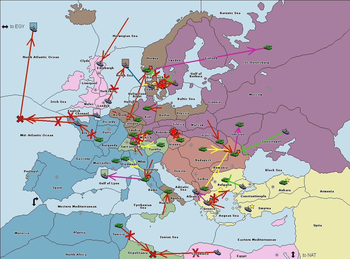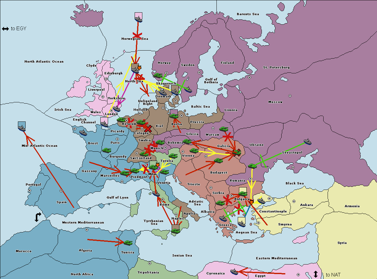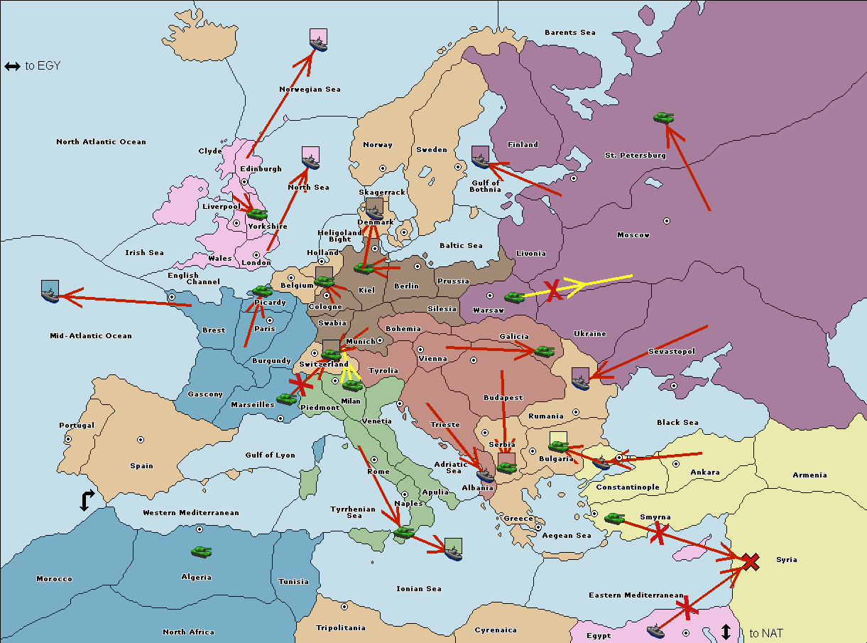 The fleet at Rumania support move to Bulgaria from Constantinople.