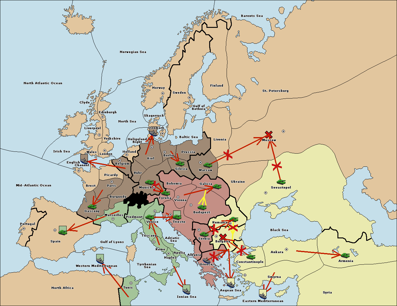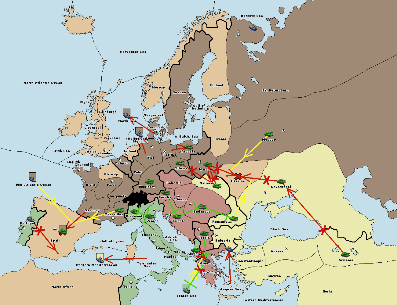 The fleet at Bulgaria (South Coast) move to Aegean Sea.