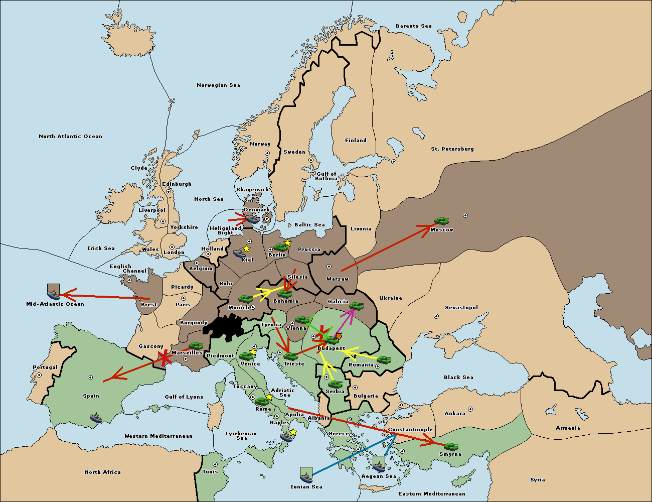 The fleet at Mid-Atlantic Ocean move to Western Mediterranean.