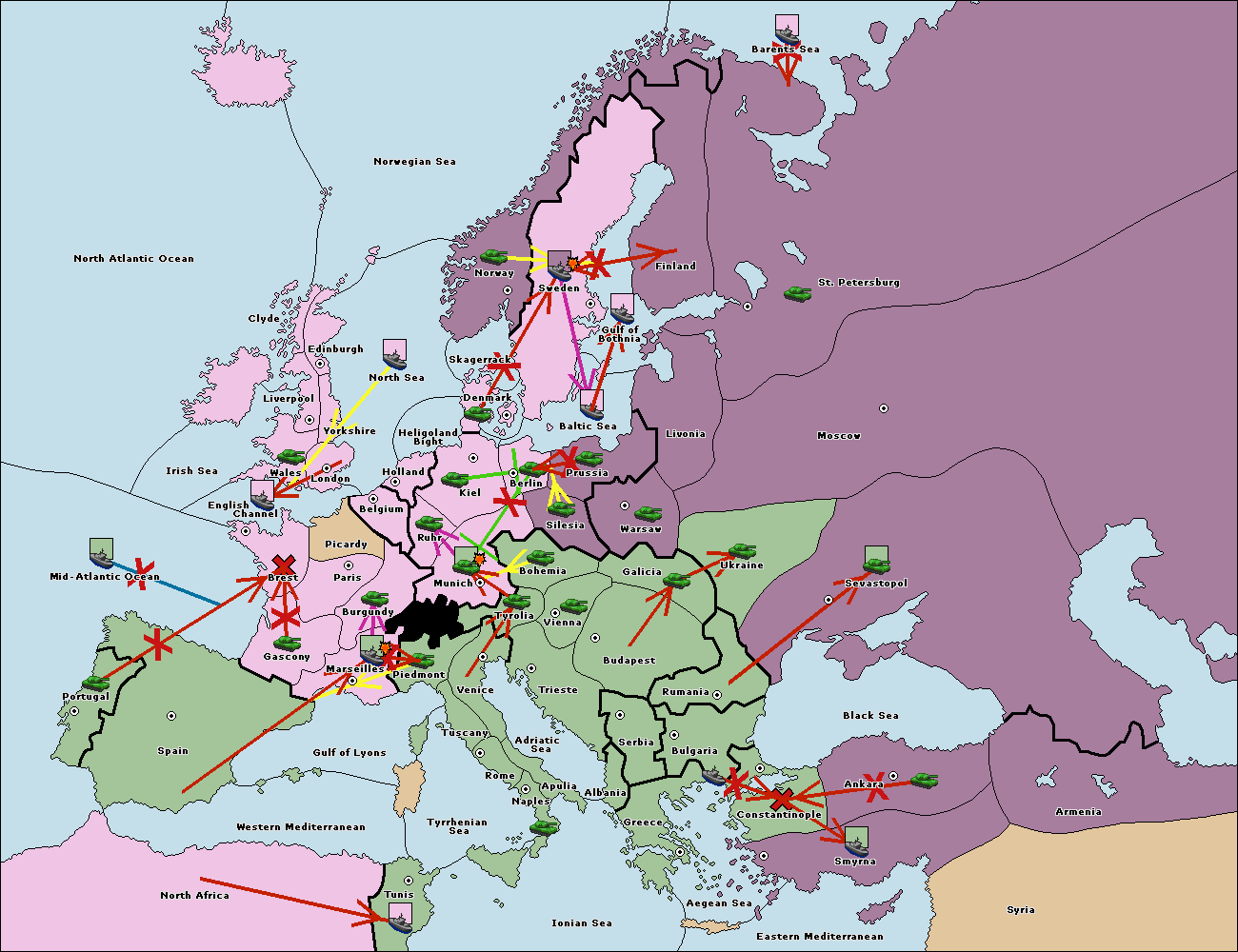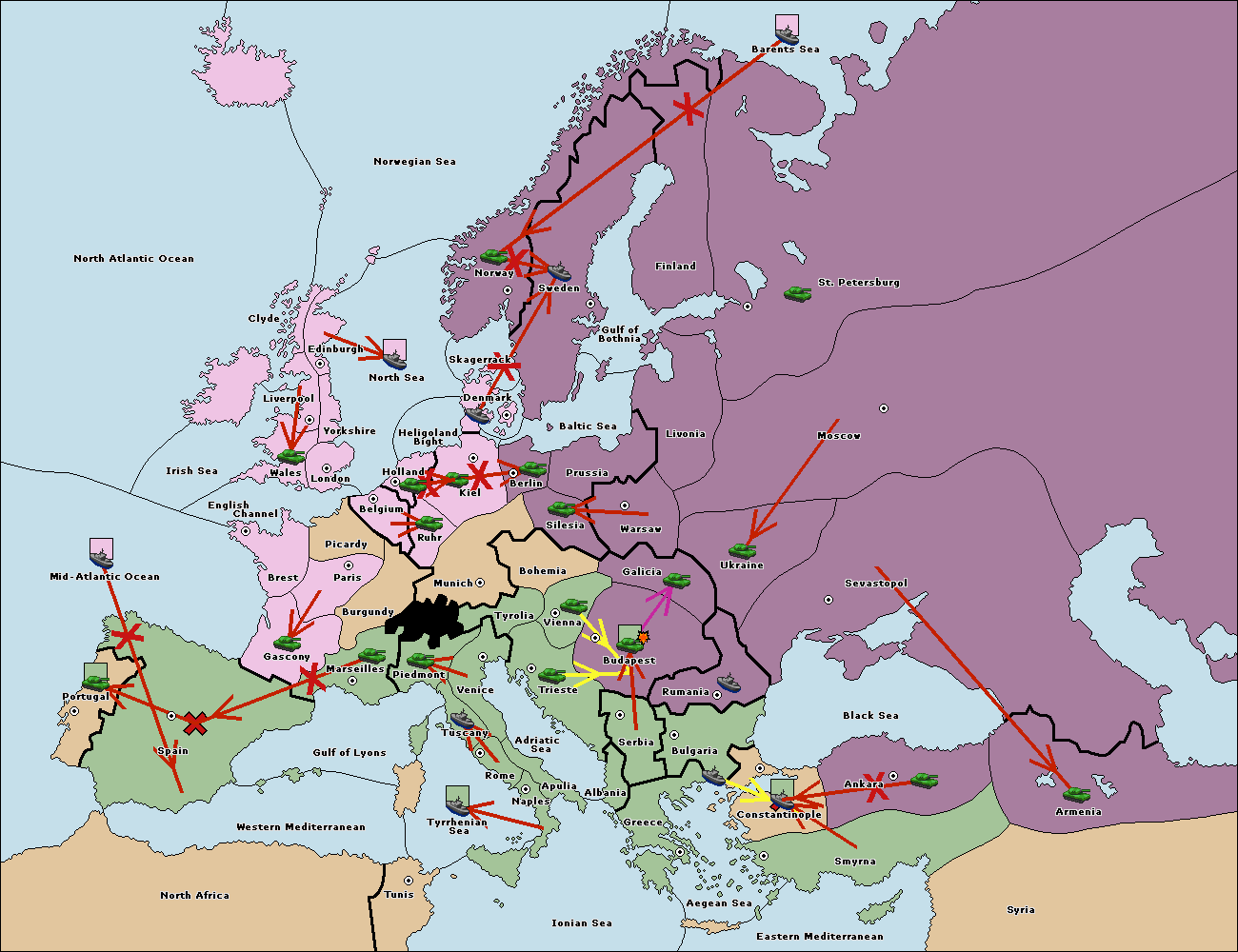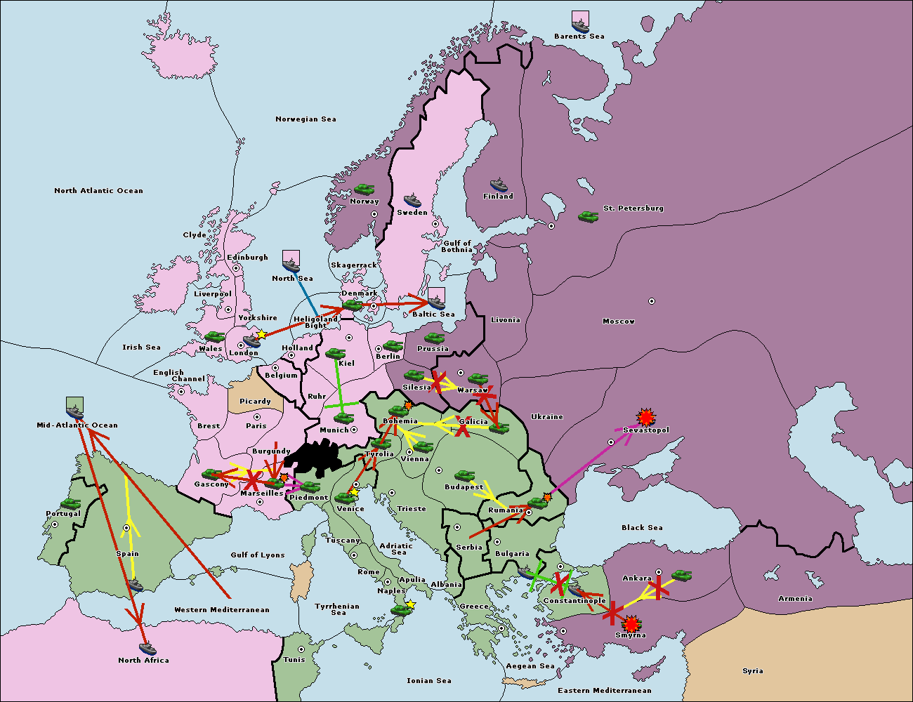 The fleet at Bulgaria (South Coast) support move to Constantinople from Smyrna.