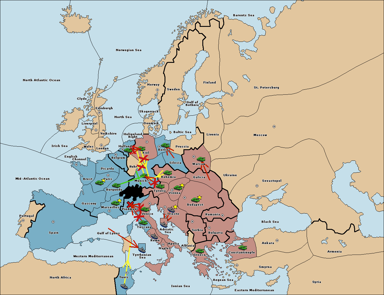 The fleet at Mid-Atlantic Ocean move to Western Mediterranean.