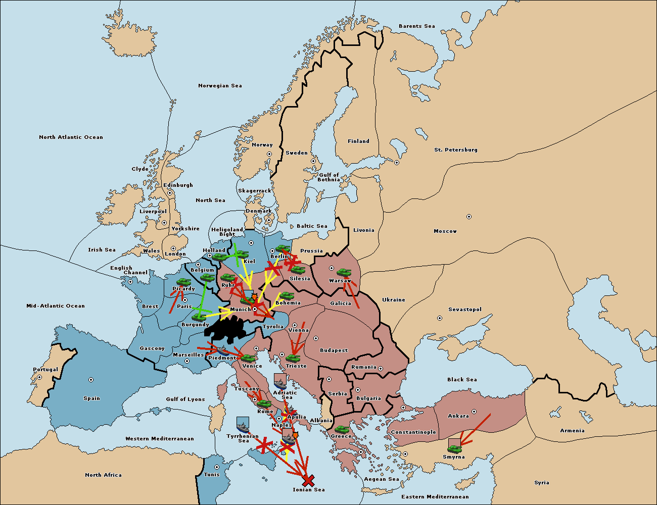 The army at Kiel support move to Munich from Tyrolia.