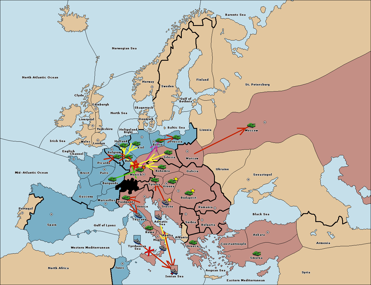 The fleet at Tyrrhenian Sea support move to Naples from Ionian Sea.