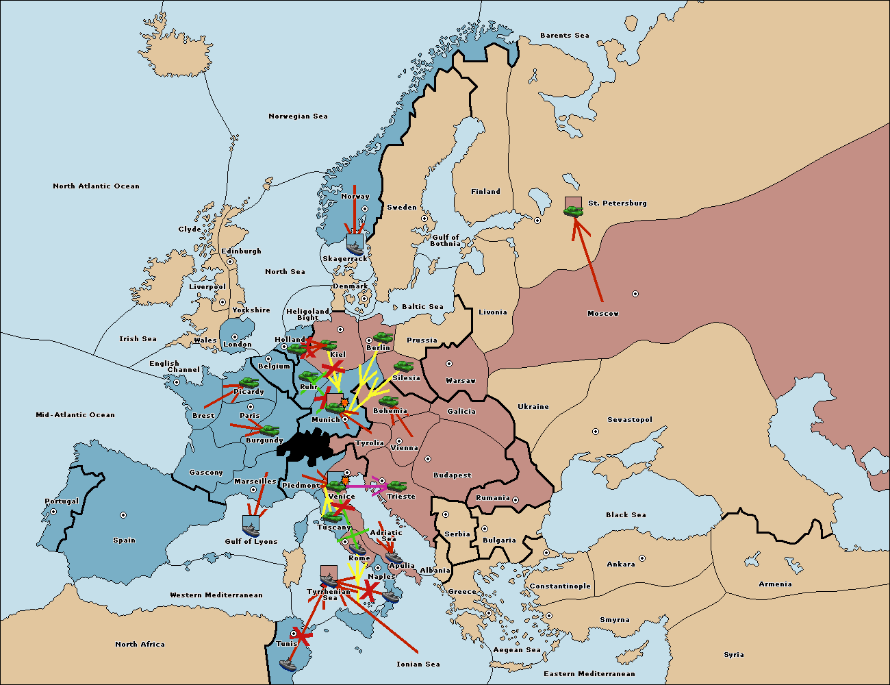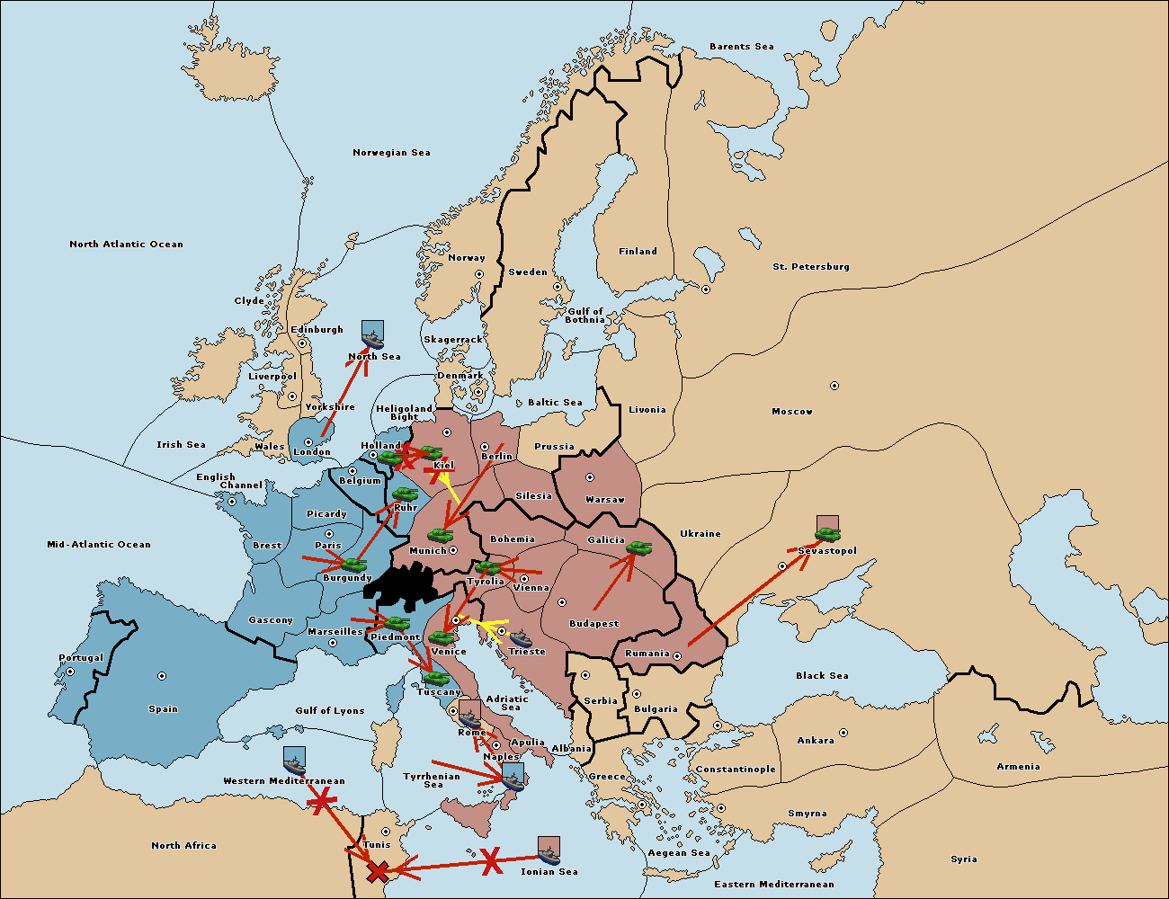 The army at Kiel support move to Munich from Tyrolia.