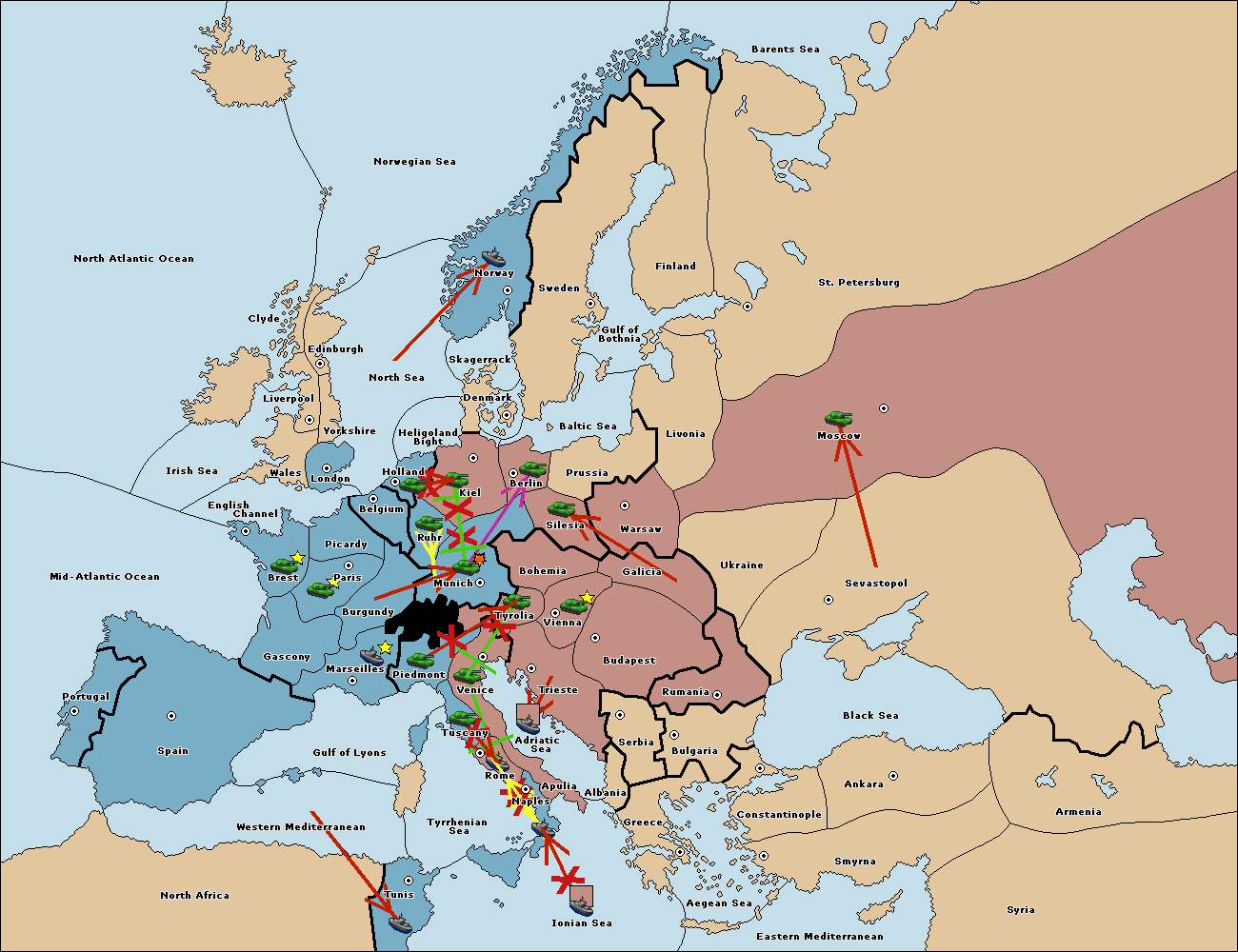 The fleet at Mid-Atlantic Ocean move to Western Mediterranean.