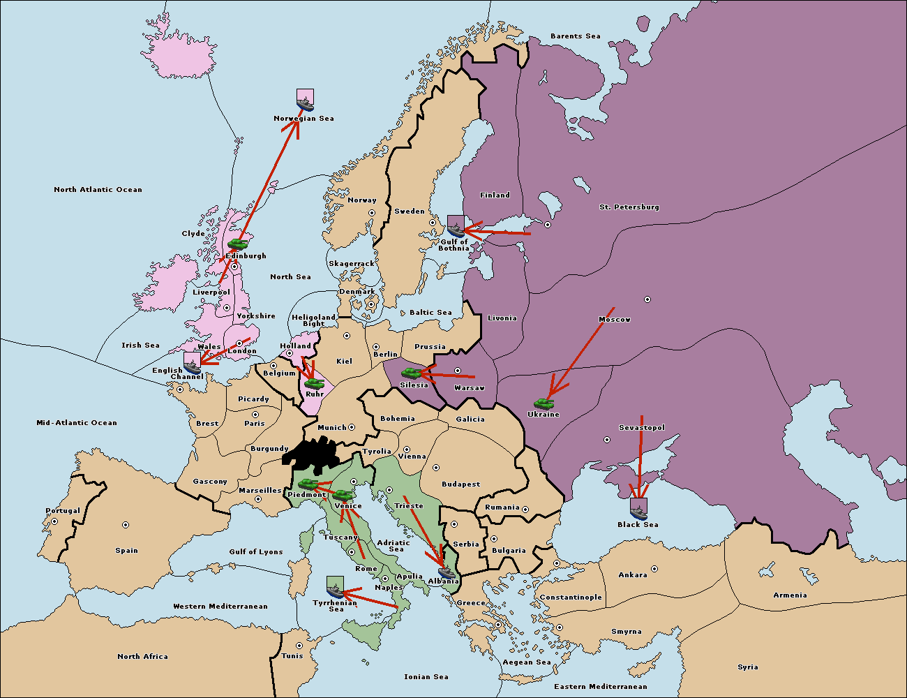 The fleet at St. Petersburg (South Coast) move to Gulf of Bothnia.