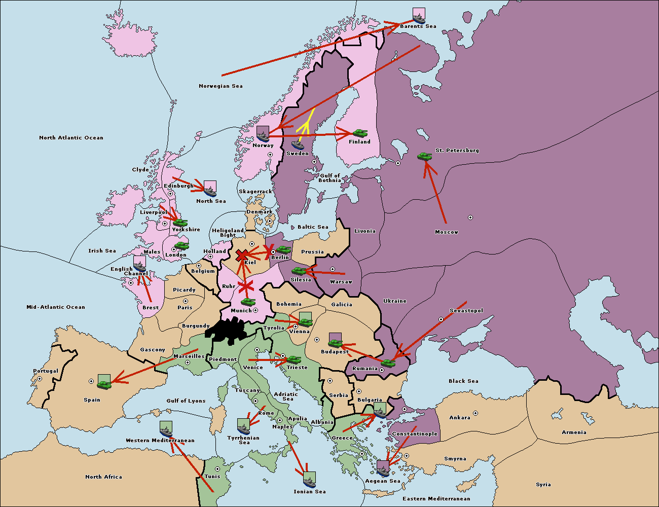 The fleet at Spain (South Coast) support move to Marseilles from Piedmont.