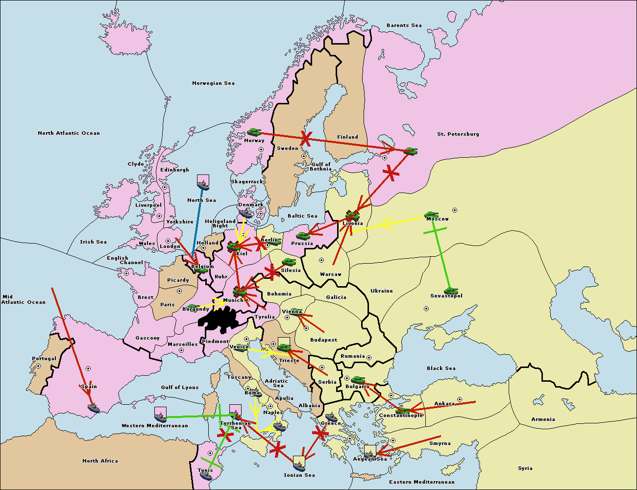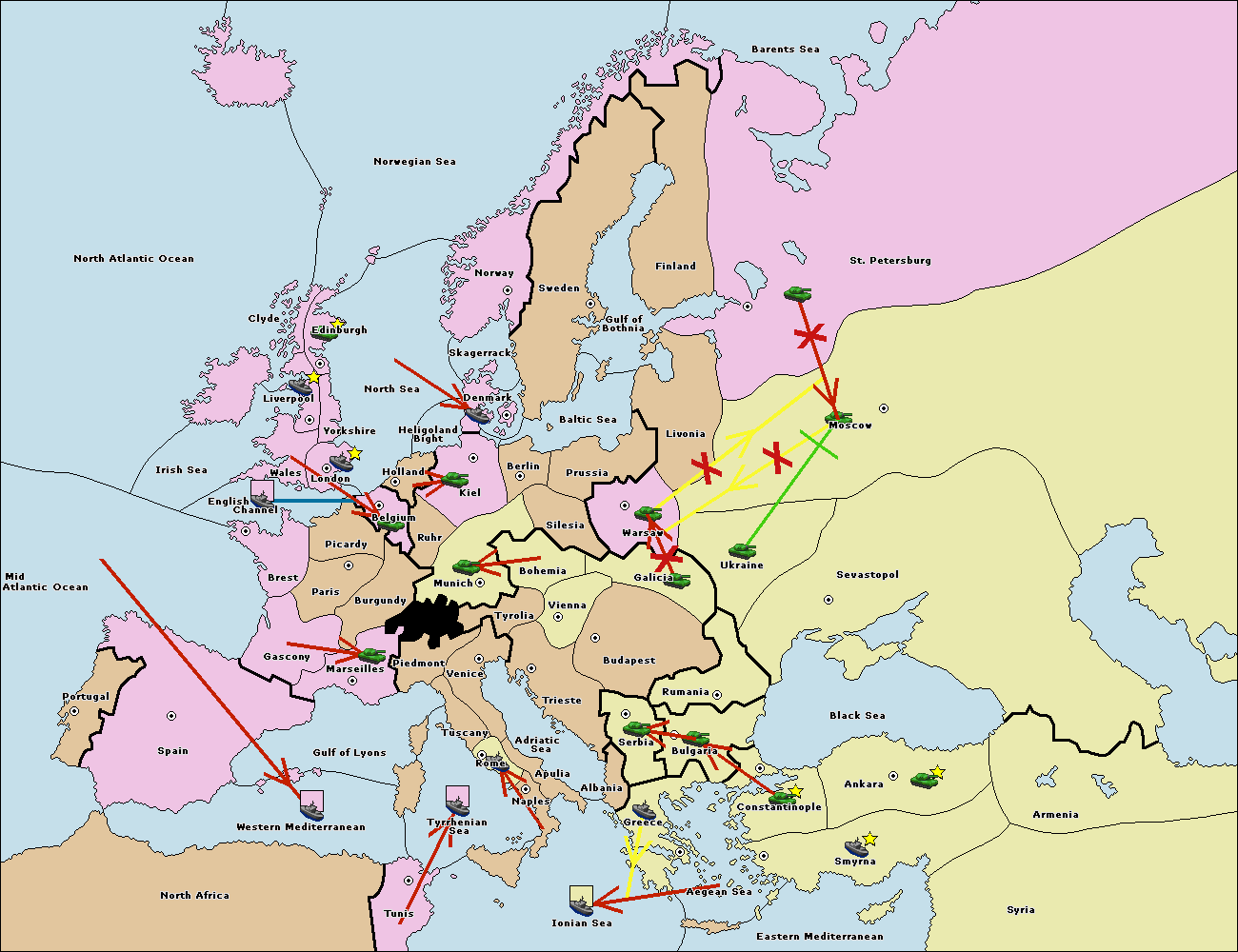 The fleet at Mid-Atlantic Ocean move to Western Mediterranean.