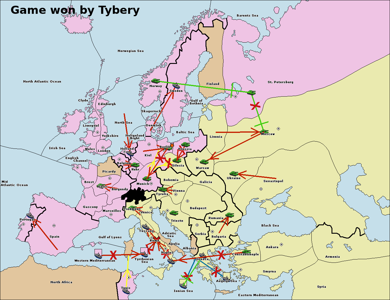 The fleet at Tyrrhenian Sea support hold to Tunis.