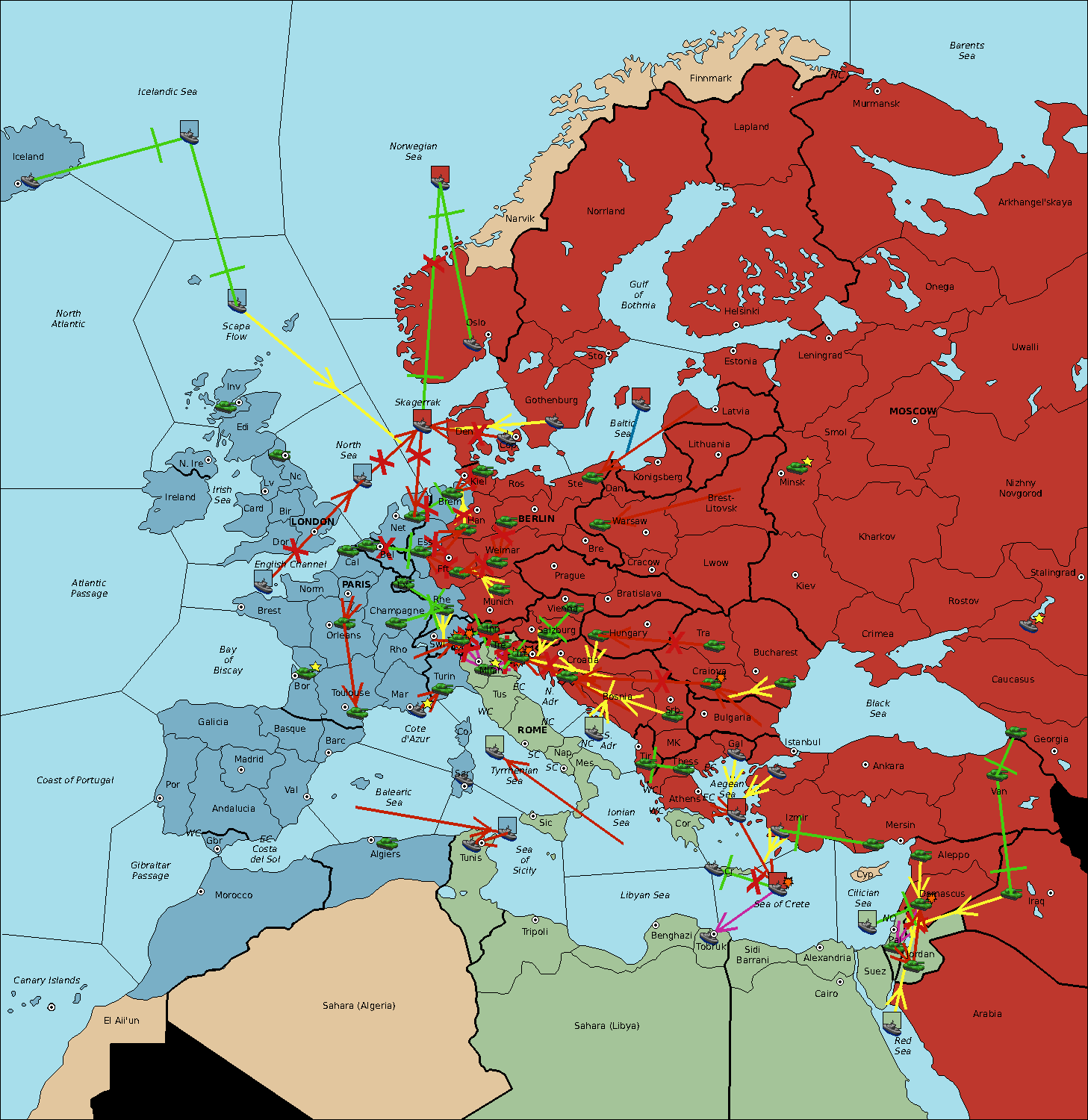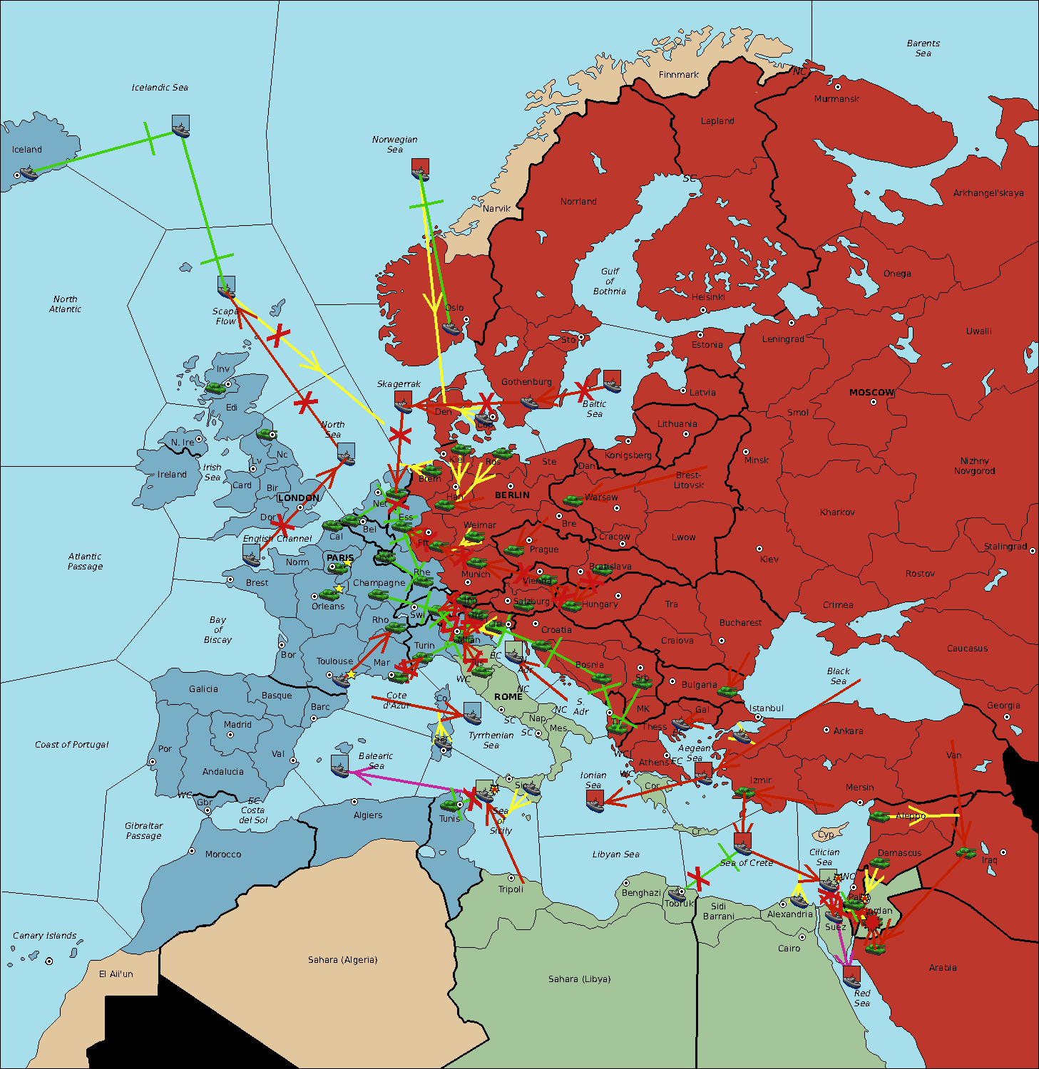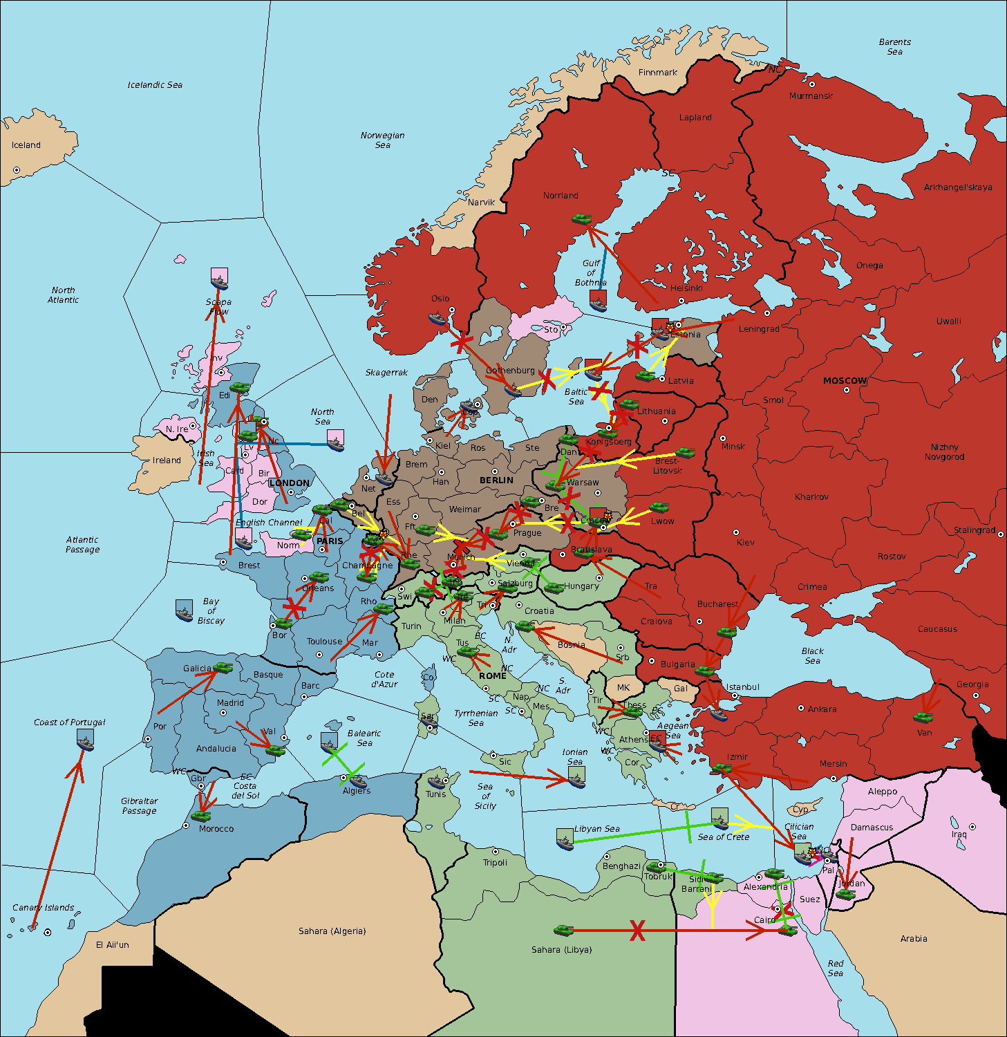 The fleet at Sardinia support move to Sea of Sicily from Balearic Sea.