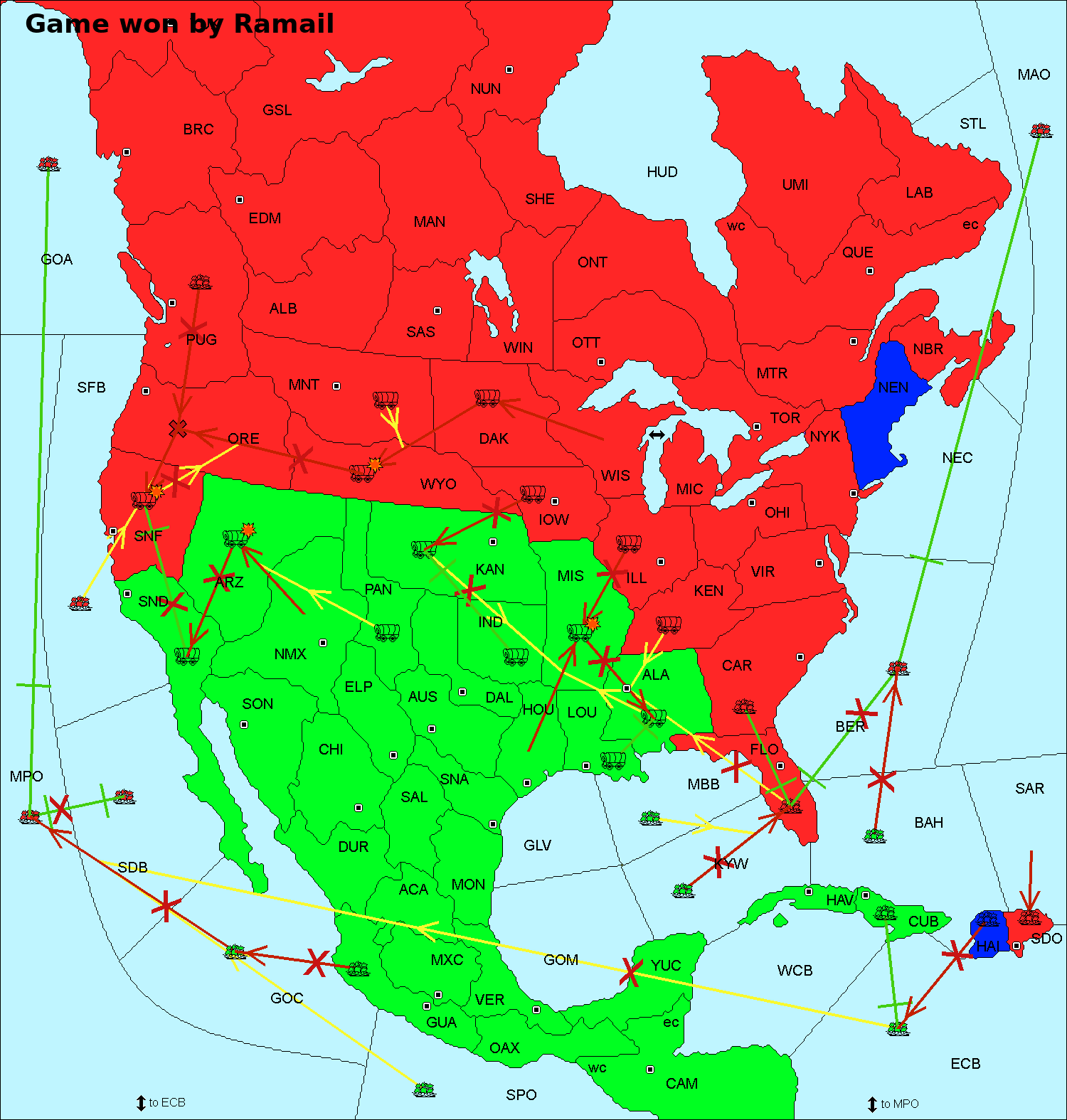 Неудачные приказы обычно отображаются только на большой карте ().