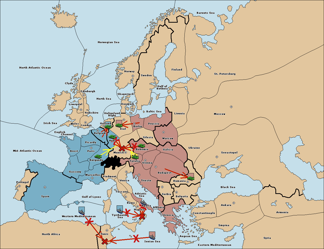 The fleet at Gulf of Lyons move to Tyrrhenian Sea.