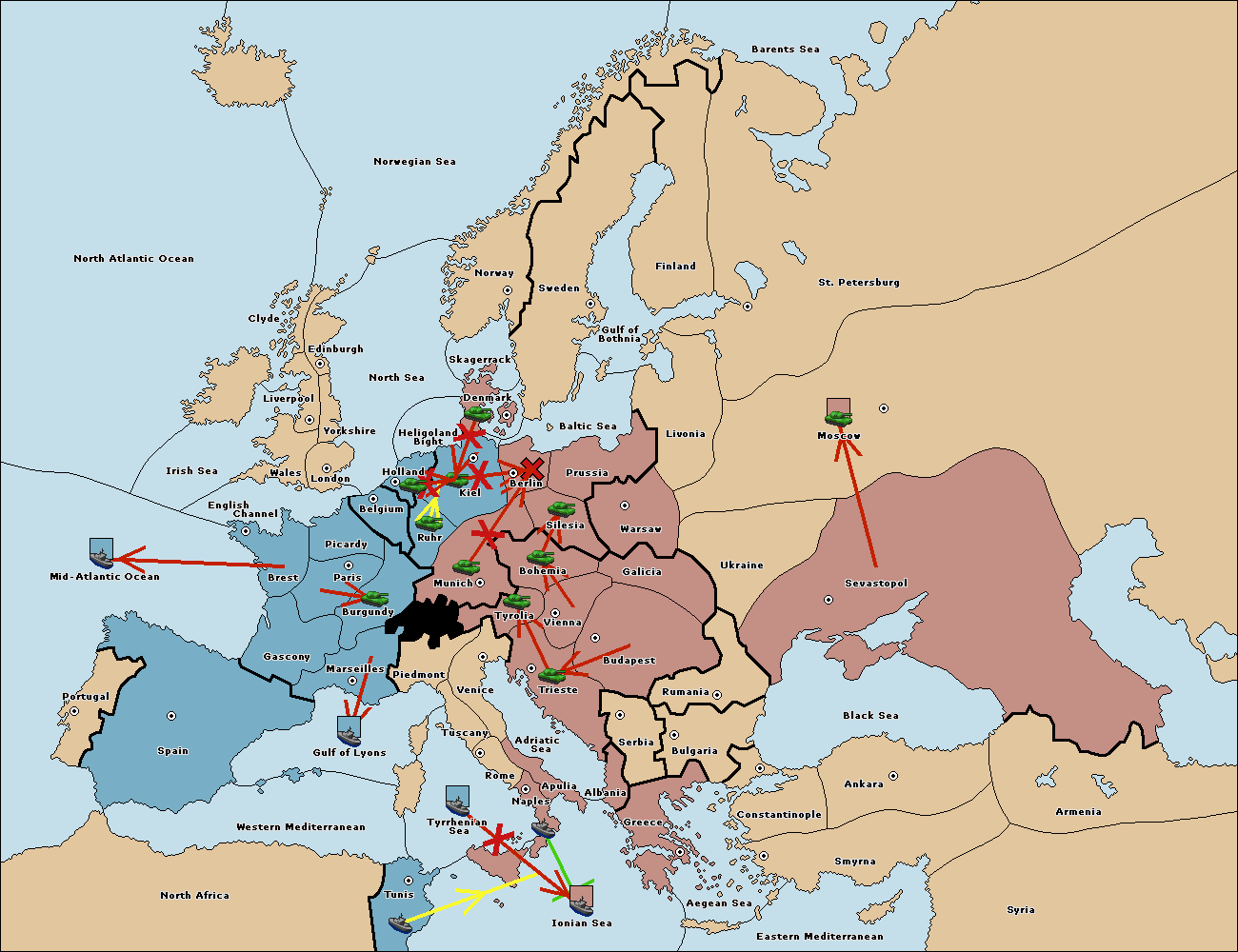 The fleet at Mid-Atlantic Ocean move to Western Mediterranean.