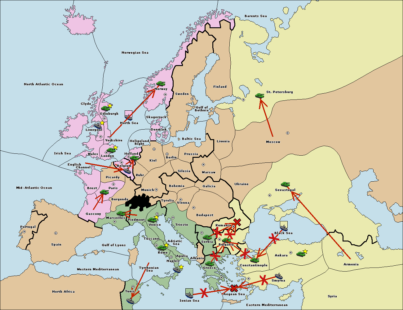 The fleet at Black Sea support move to Bulgaria from Constantinople.