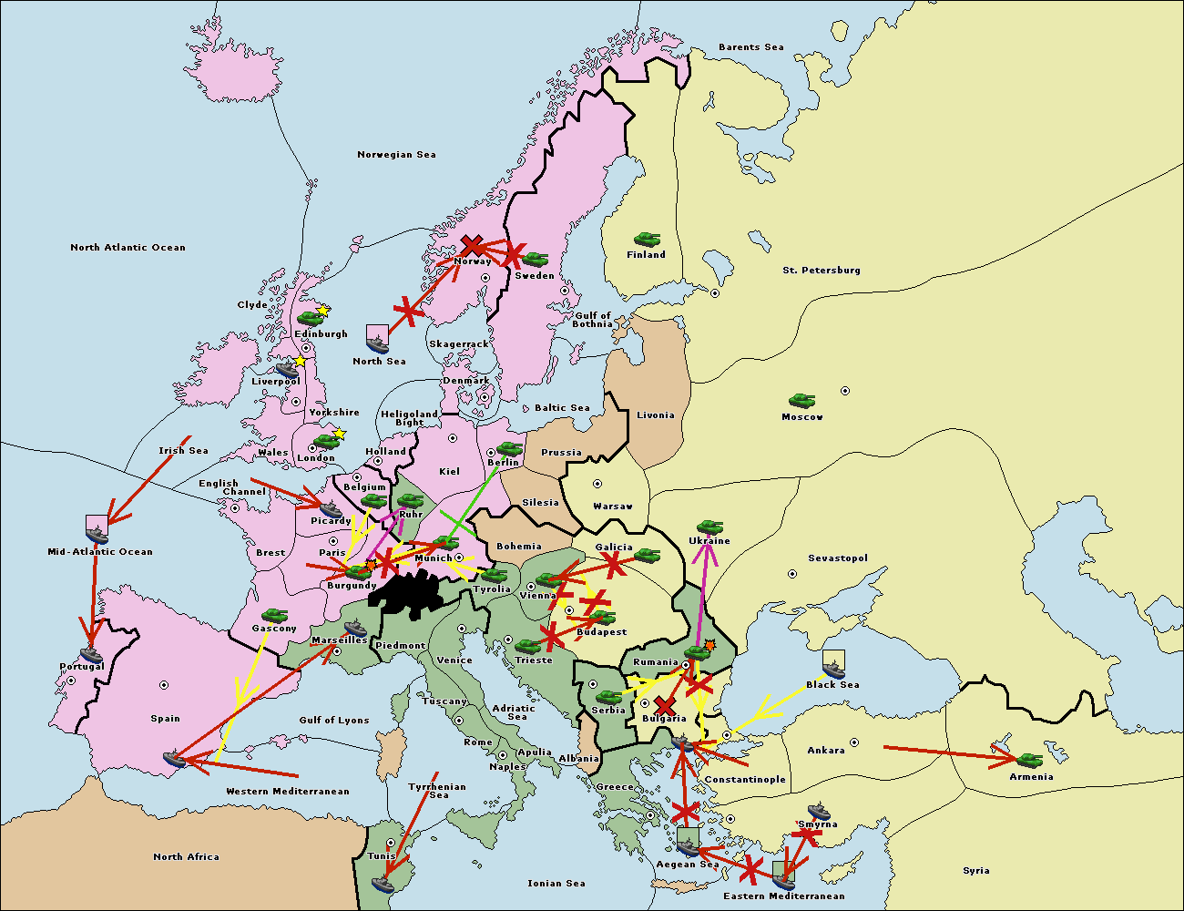 The fleet at Spain (South Coast) support hold to Western Mediterranean.