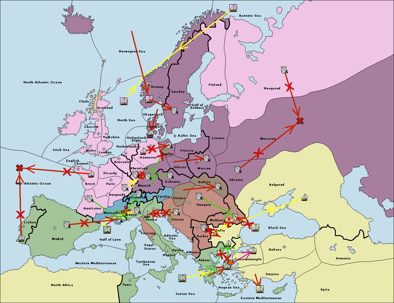 The fleet at Western Mediterranean move to Tyrrhenian Sea.