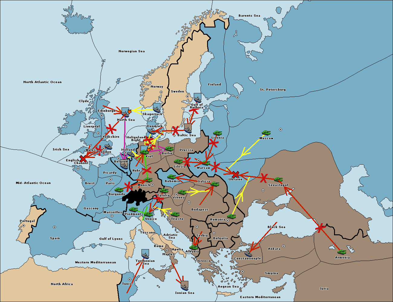 The fleet at Holland support hold to Kiel.