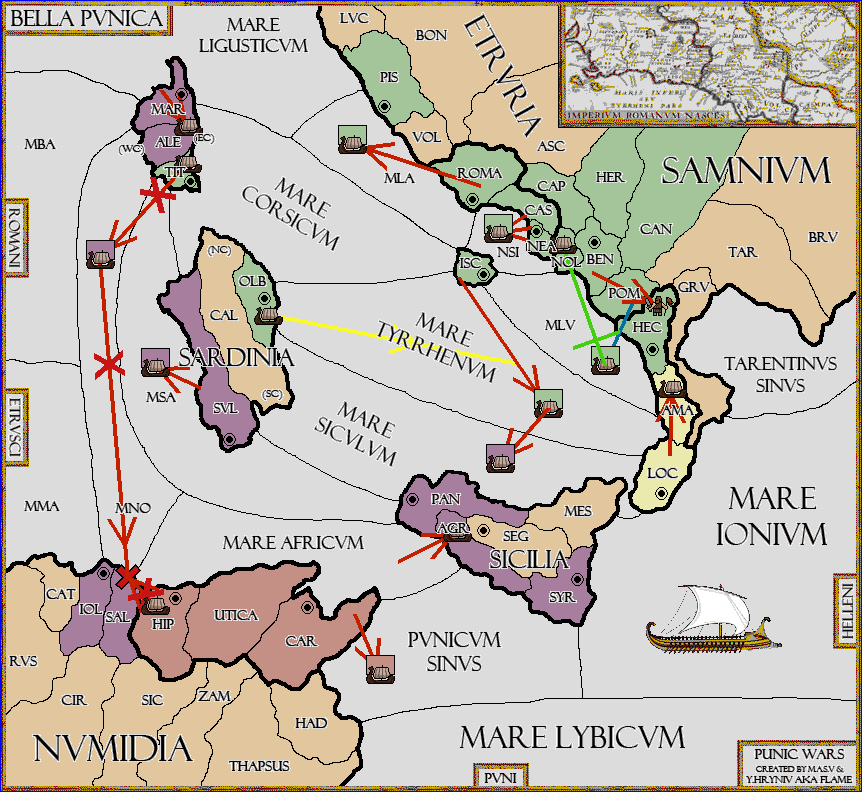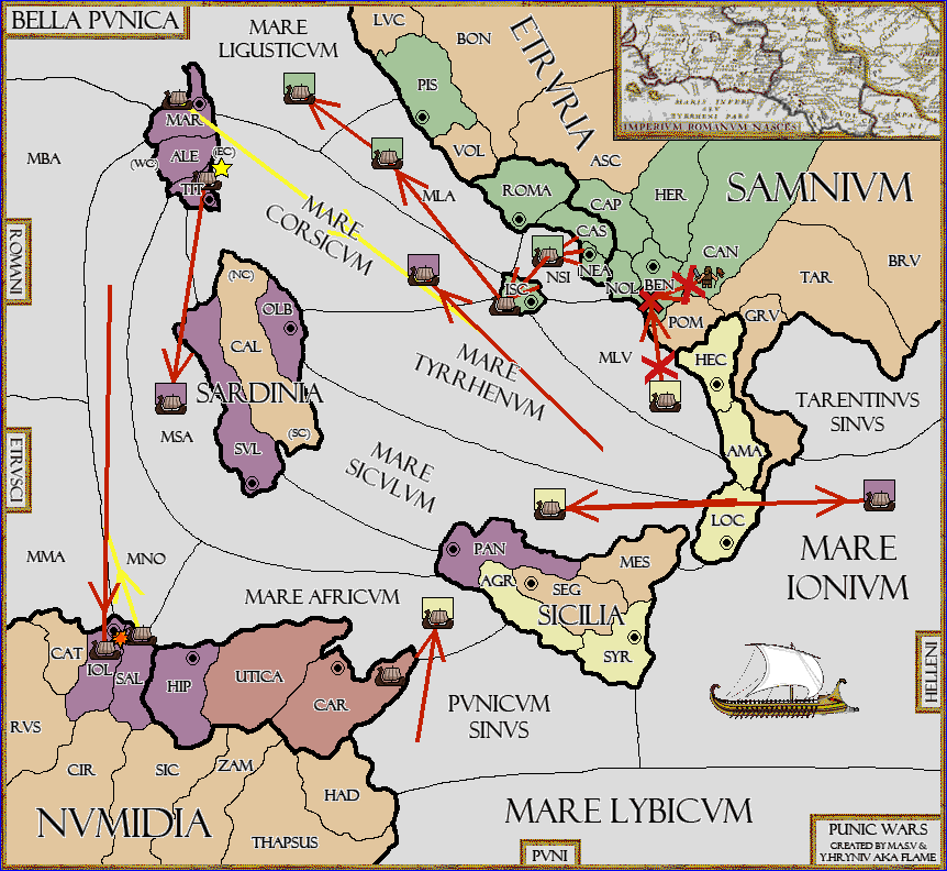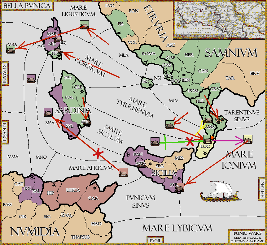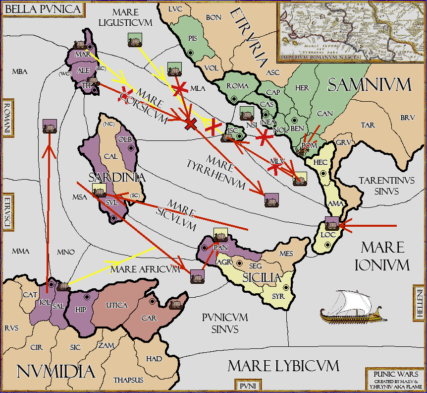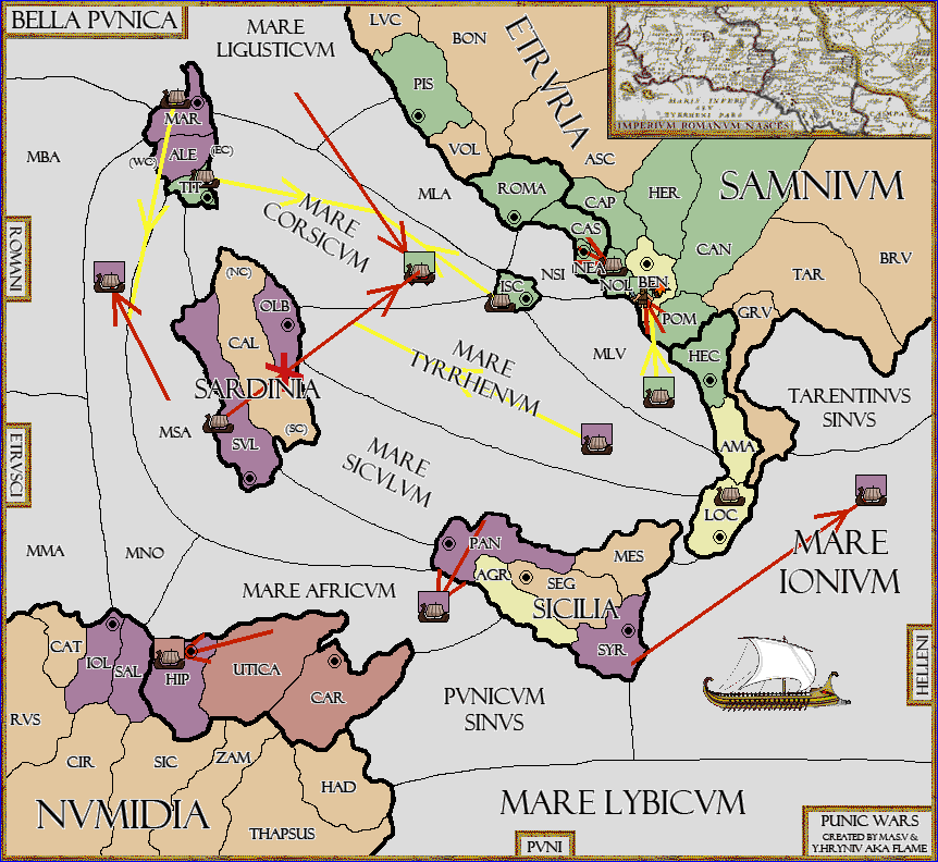 The fleet at Mare Corsicum move to Mare Tyrrhenum.