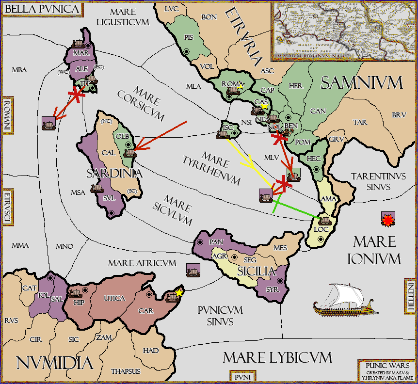 The fleet at Iscia support move to Mare Corsicum from Mare Latium.