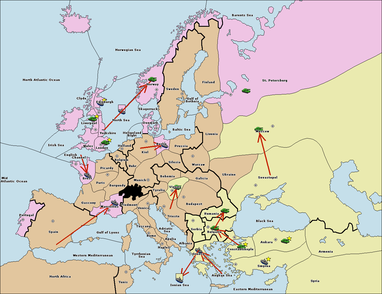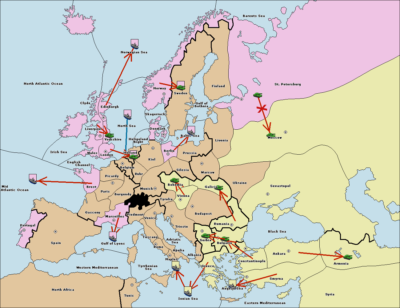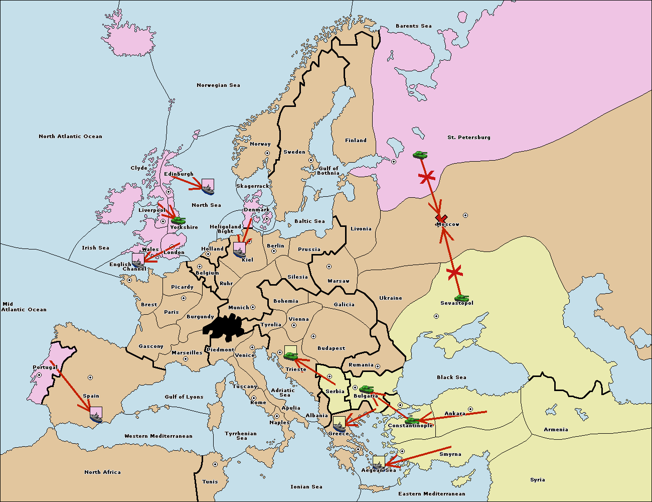 The fleet at Bulgaria (South Coast) move to Greece.