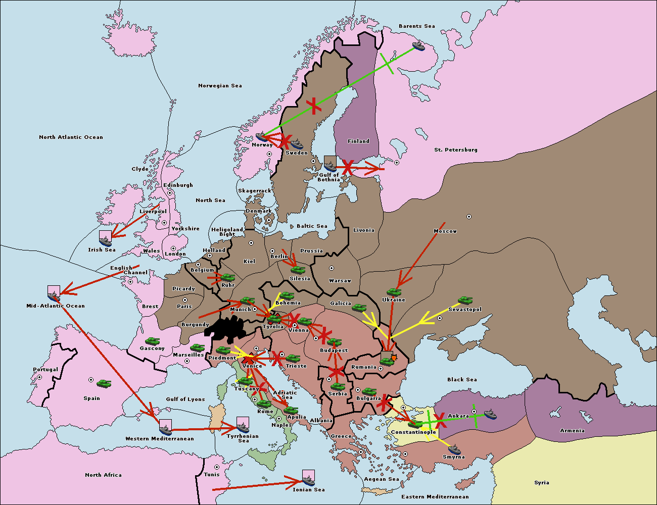 The army at Bulgaria support hold to Constantinople.