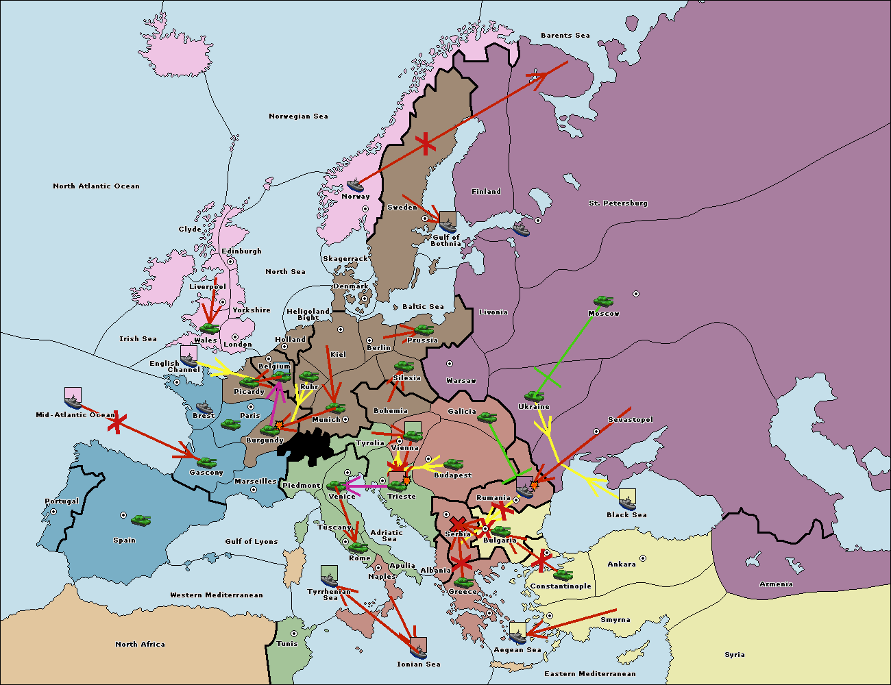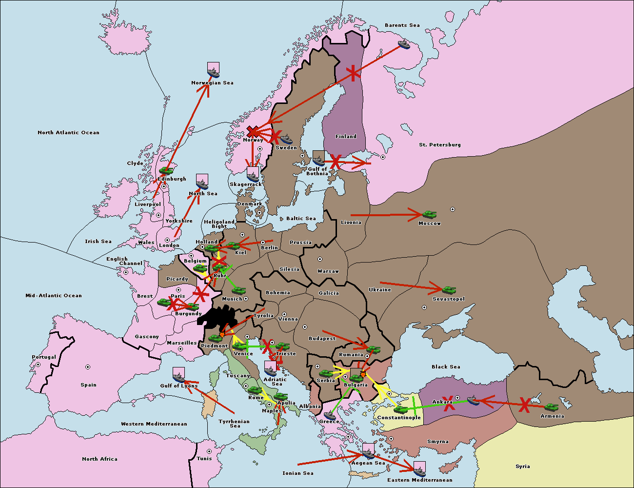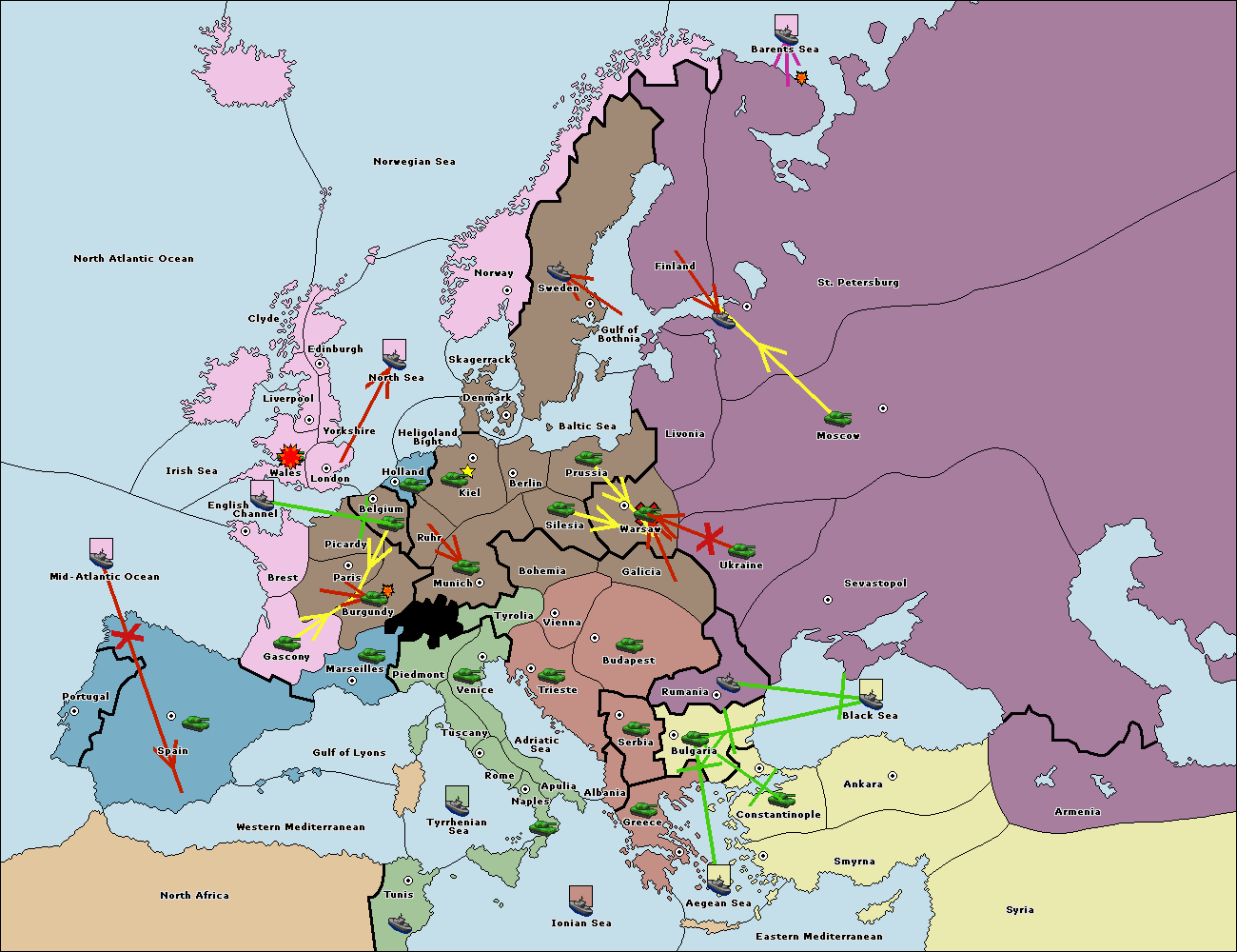 The fleet at Aegean Sea support hold to Bulgaria.