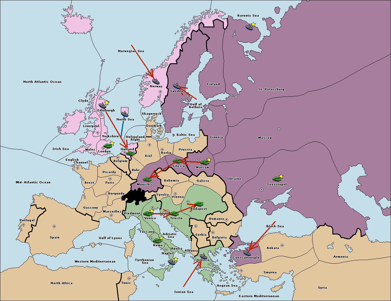The fleet at Greece move to Bulgaria (South Coast).