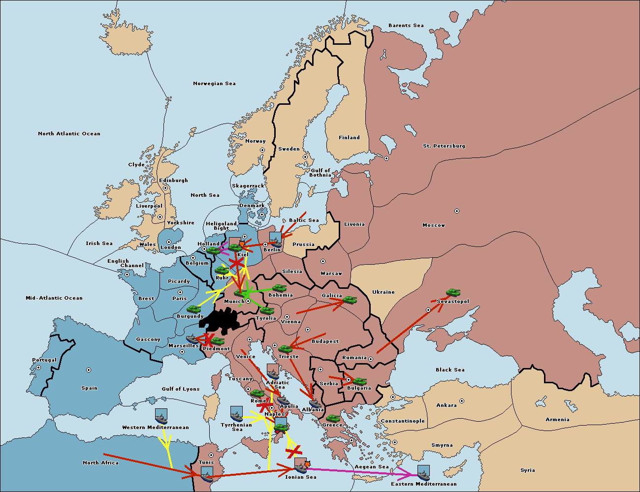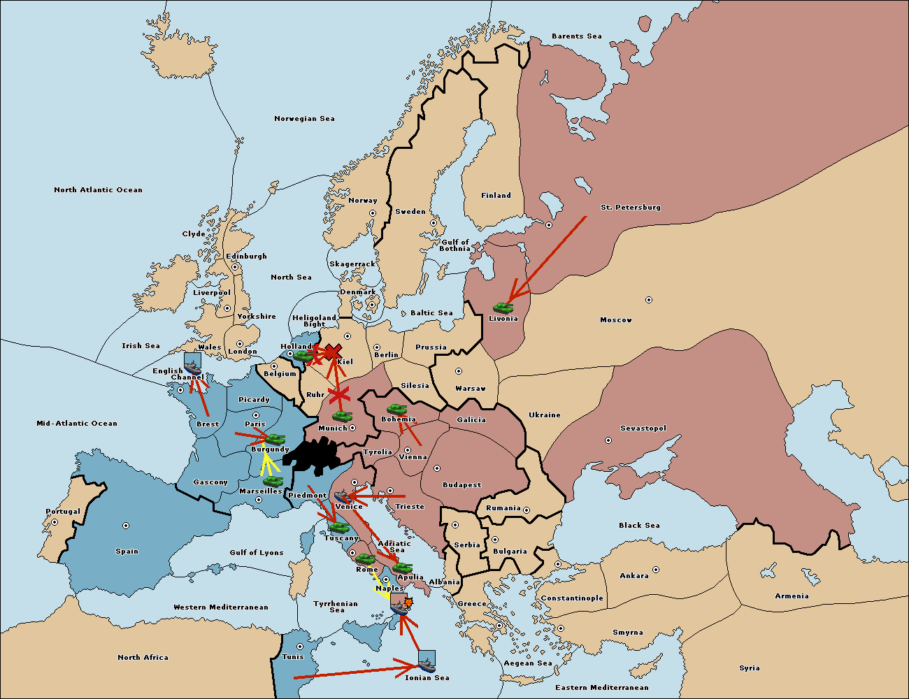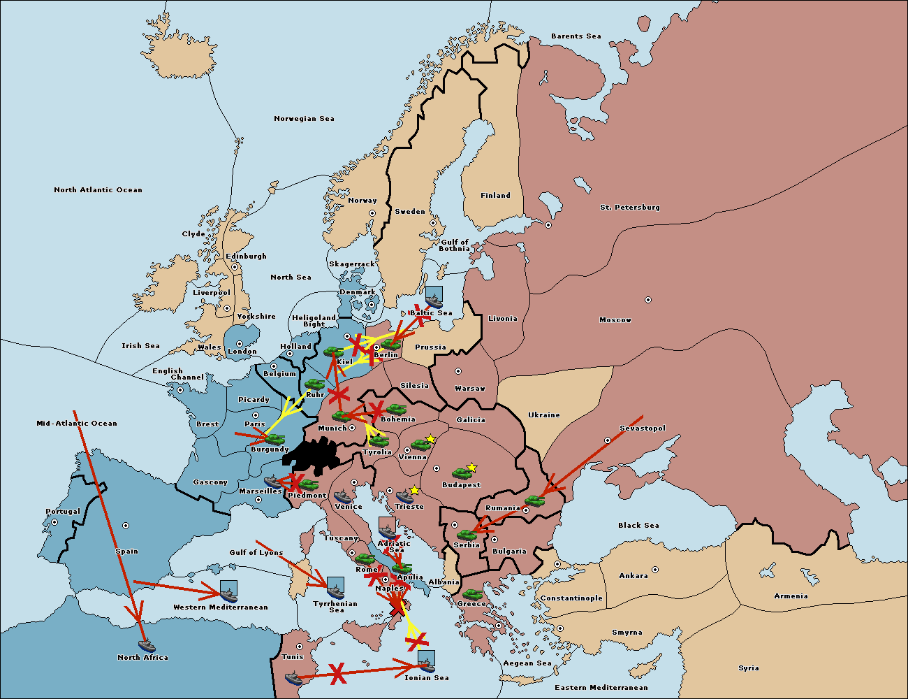 The fleet at Spain (South Coast) move to Western Mediterranean.