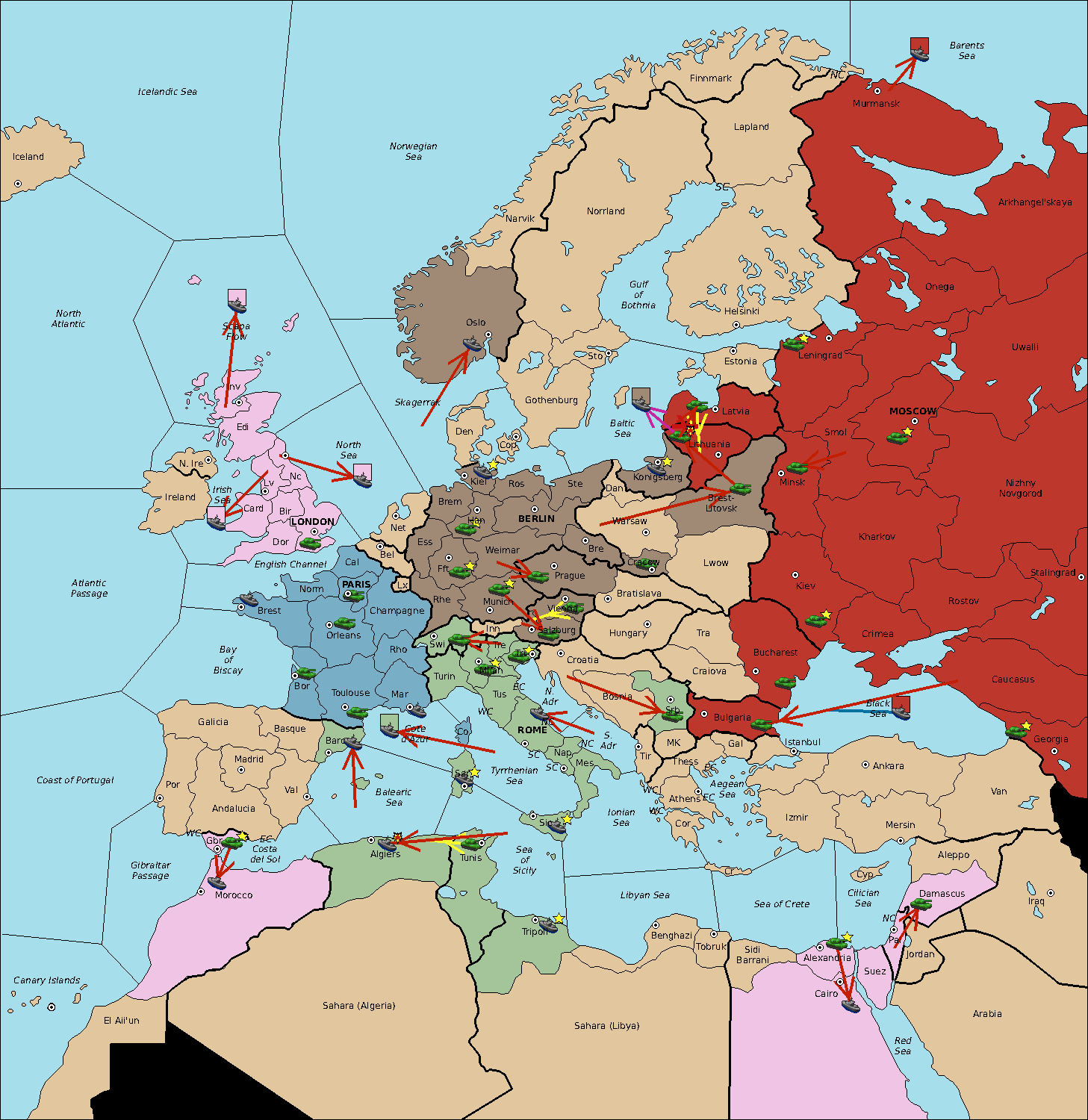 The fleet at Sardinia move to Balearic Sea.