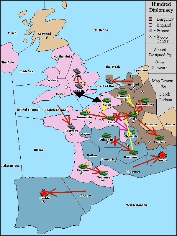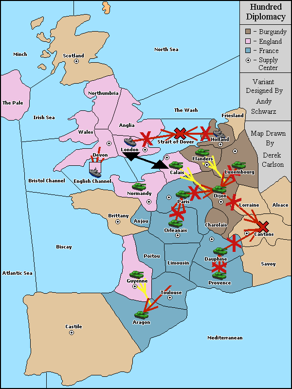 The army at Dijon move to Calais.