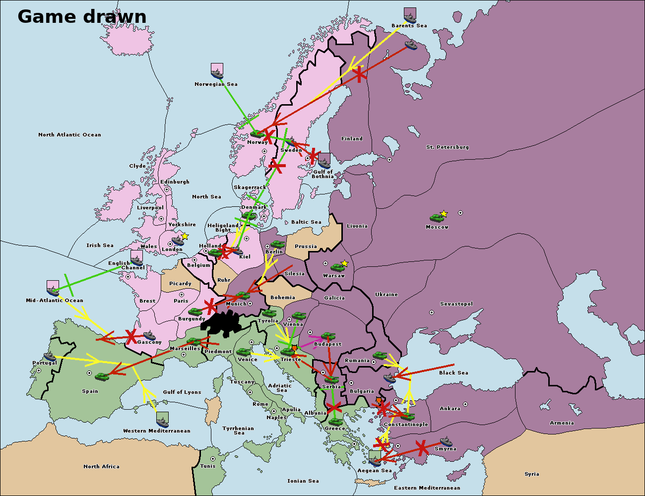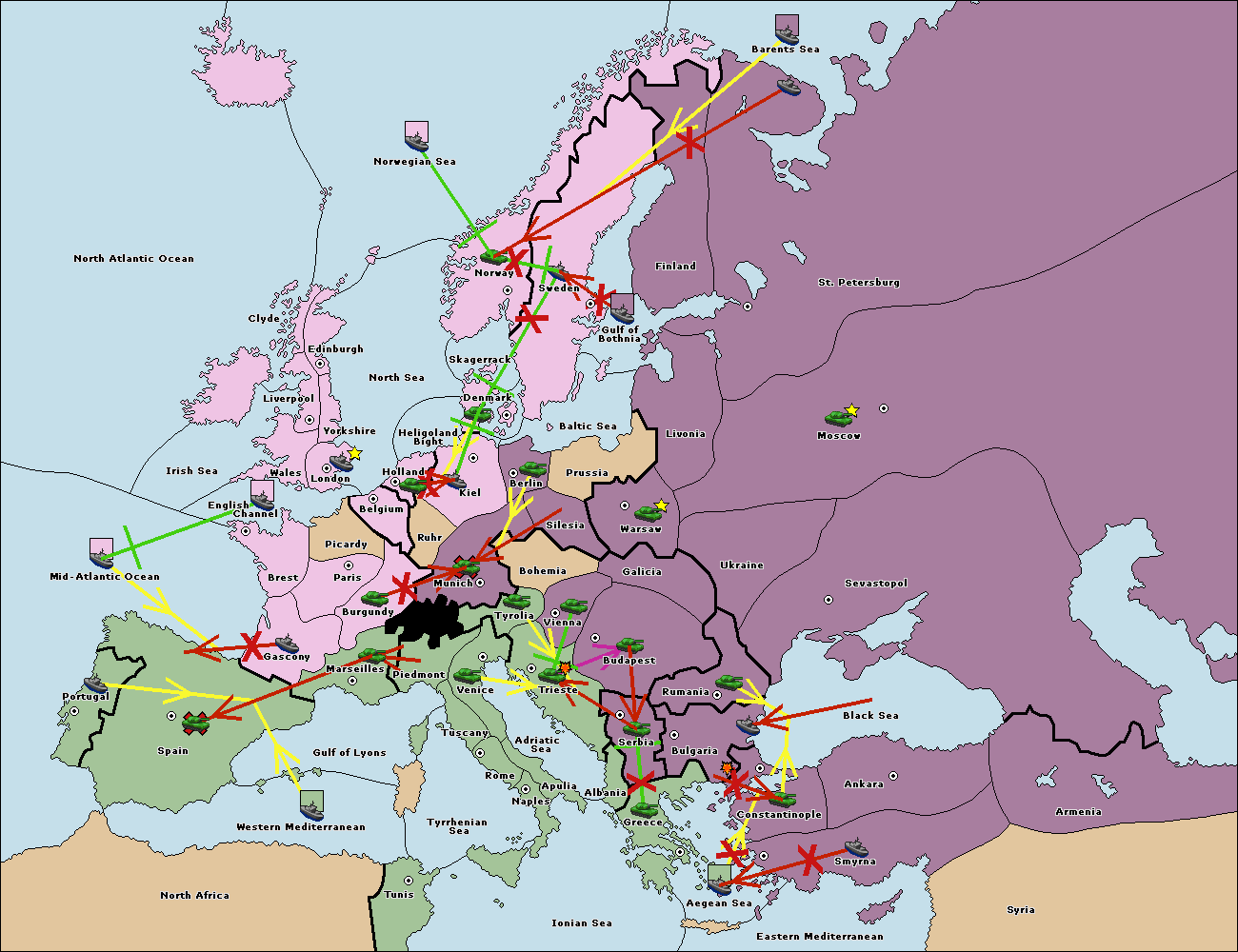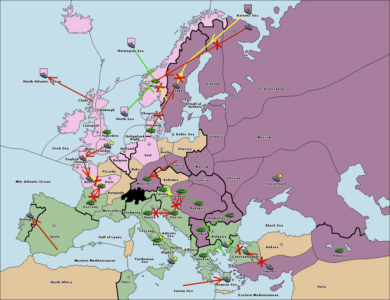 The fleet at Bulgaria (South Coast) support move to Constantinople from Aegean Sea.