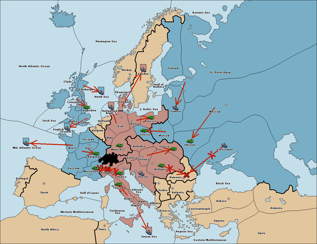The fleet at Livonia move to Baltic Sea.