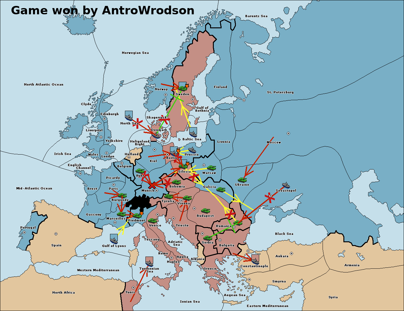 The fleet at Bulgaria (South Coast) move to Constantinople.