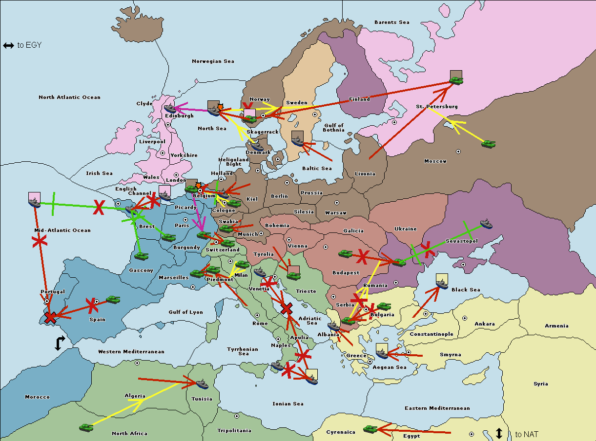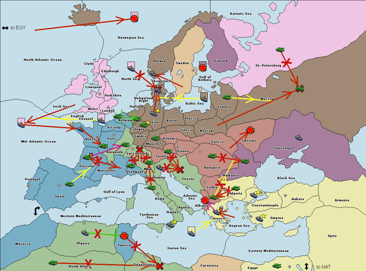 The fleet at Tunisia move to Tyrrhenian Sea.